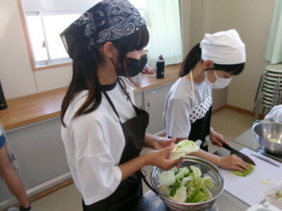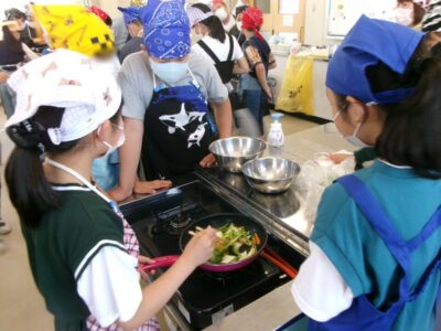 包丁を使ったり、火を使ったりすることから、CSこどもおうえん隊の方にも来ていただき、教え、見守っていただきました。いつもありがとうございます。
