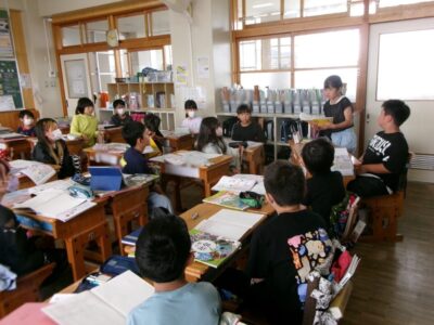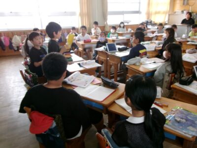 自分たちの学習を自分たちで意見を出し合いながら、考えていました。話すだけの発表より、黒板に書いて説明する子が多く、友だちの意見に質問したり、補足したりする子もいて、多様な考えを共有していました。個々の学びが共有することによって考えが広まり、深まります。