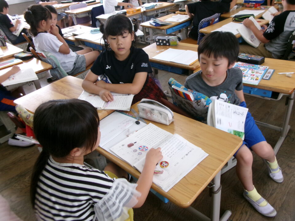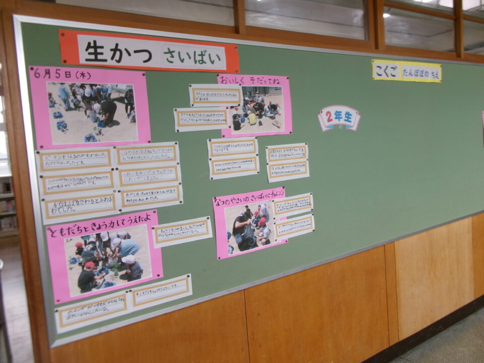 各学年かくがくねん掲示板けいじばんには、どもたちの学習がくしゅう成果せいか掲示けいじしています。こちらもあわせてごらんになってください。