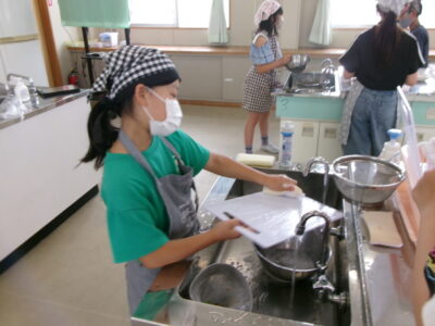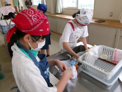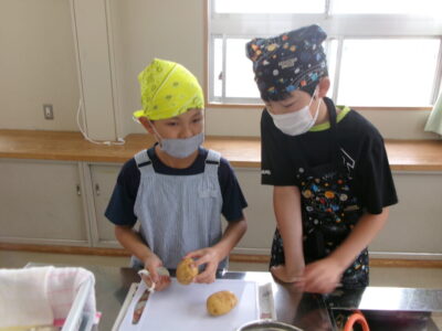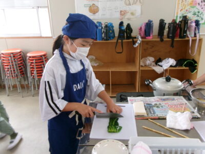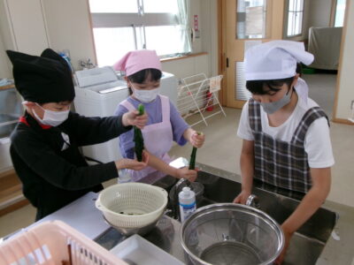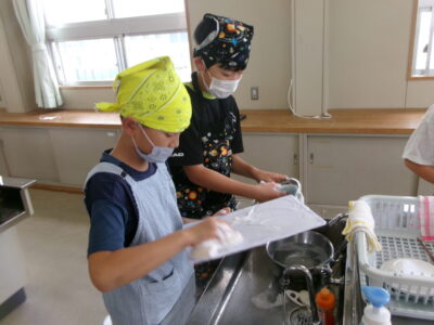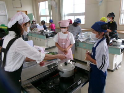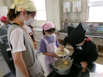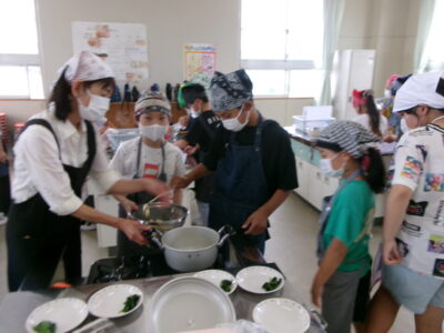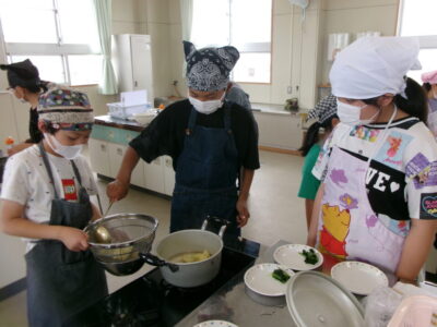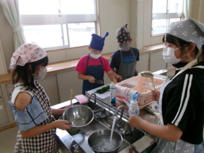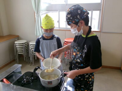 CSこどもおうえん隊の方にも来ていただき、いろいろ教えていただきました。特にゆでたあとの湯を捨てるのには、子どもたちには大変危険ですので、熱湯を捨てて、鍋を水で冷ますところまでしていただきケガ無く無事終えることができました。いつもありがとうございます。