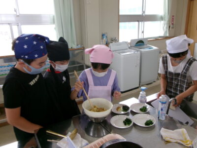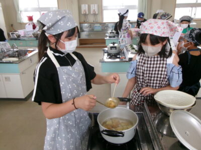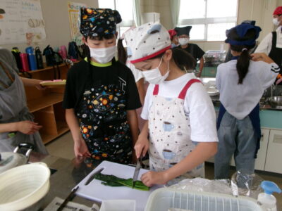 5年生では、前回、調理実習でお茶を淹れましたが、今日は料理の中でも『ゆでる』調理を経験しています。