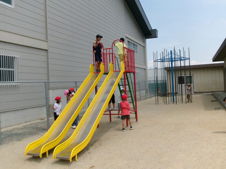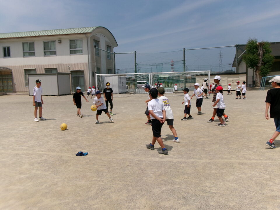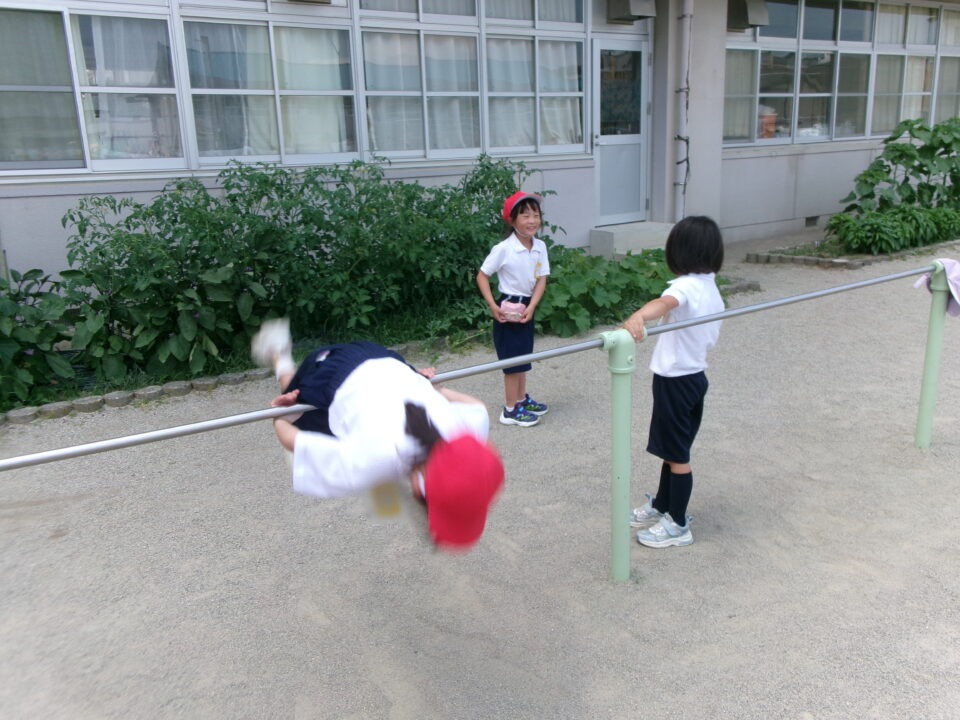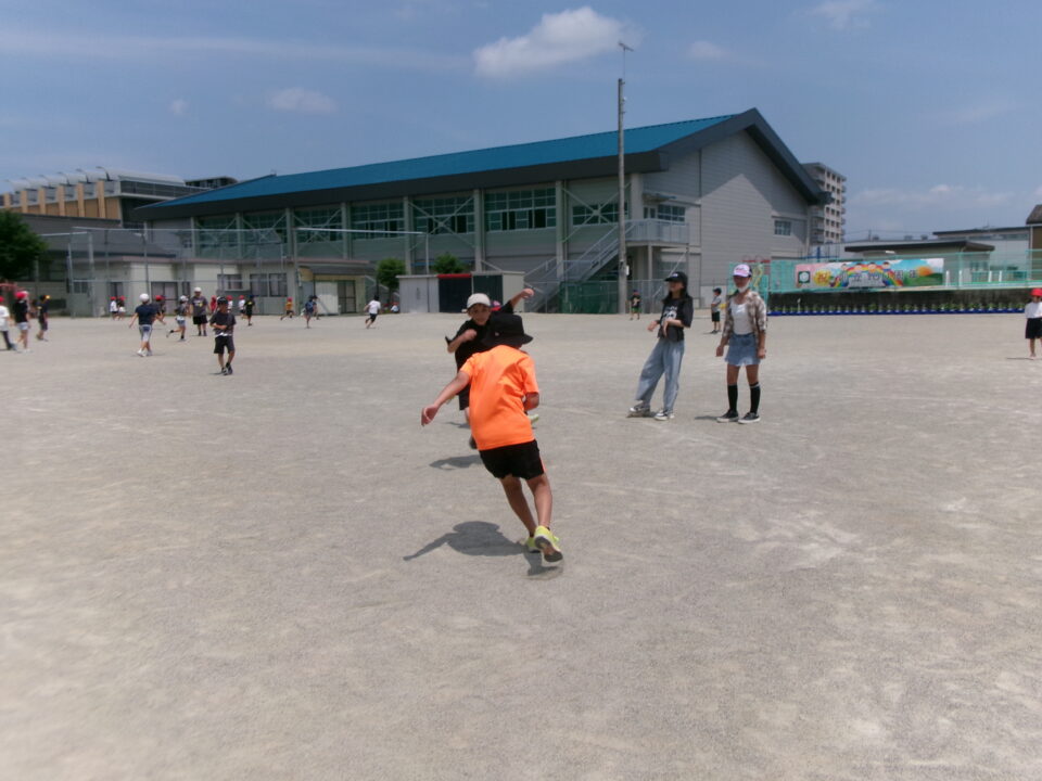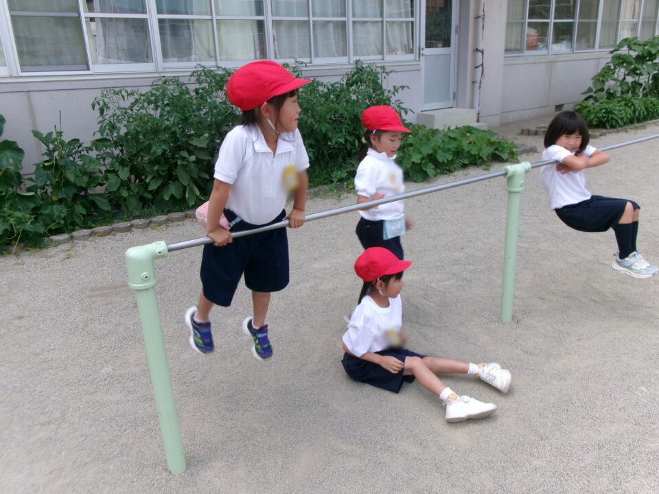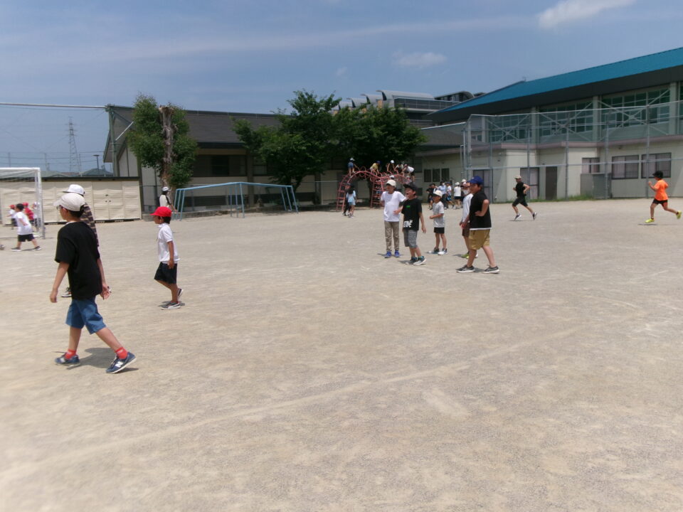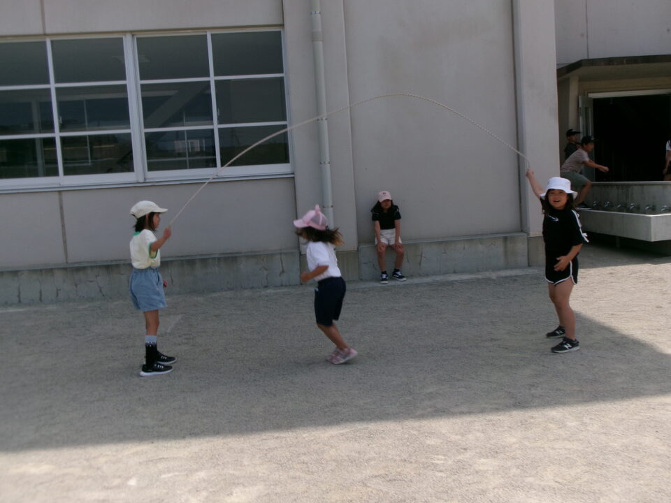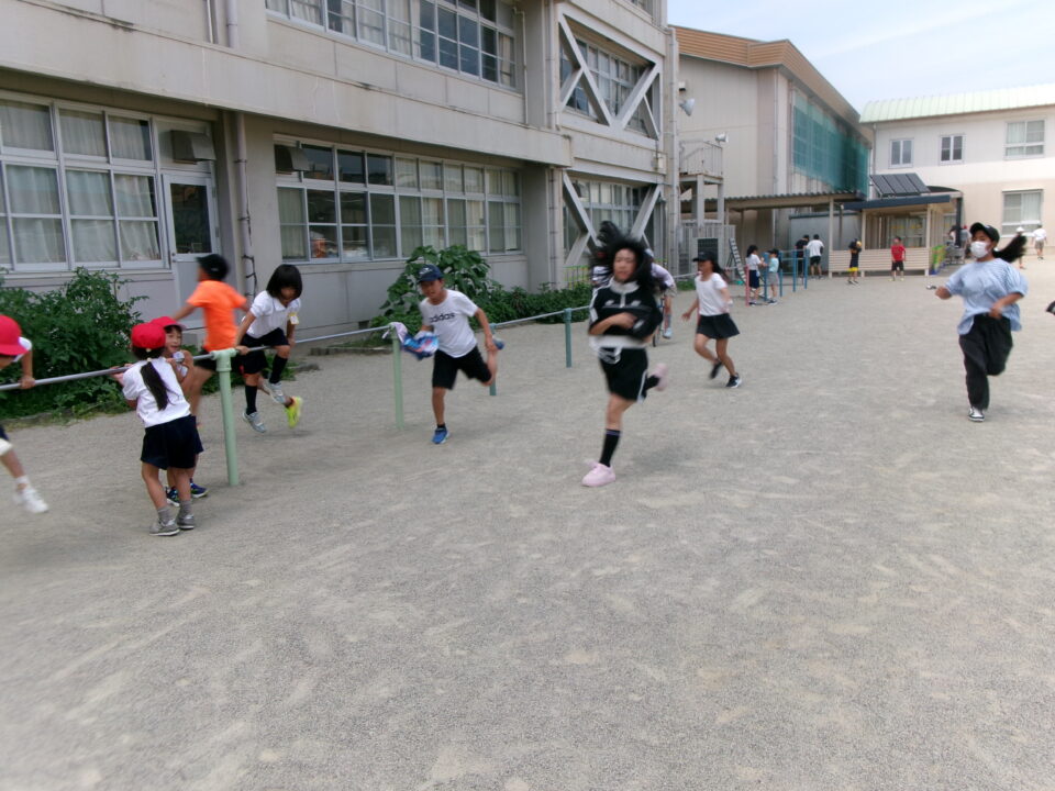子どもたちは、昼休みに帽子をかぶって運動場へたくさんの子が遊びに出ています。