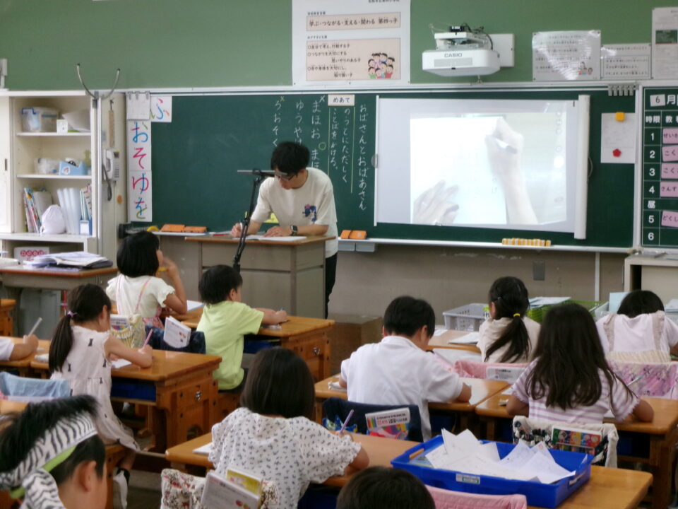 国語では、伸ばす音を言葉で表す学習をしていました。