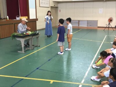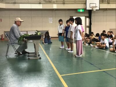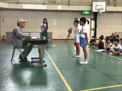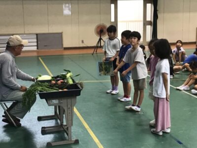 毎年、2年生では野菜について何でも知っている郷津町の牧野さんをお迎えして分かりやすくお話をしていただいています。