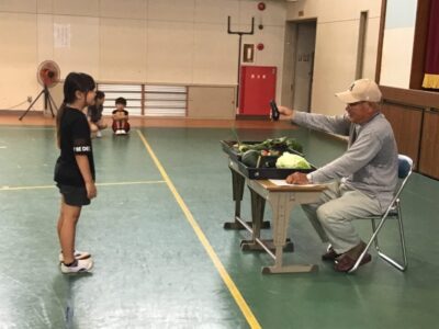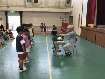 今日は、その一部の野菜を持ってきてくださり、子どもたちに見せてくれたり、子どもたちの質問に答えたりしてくれました。