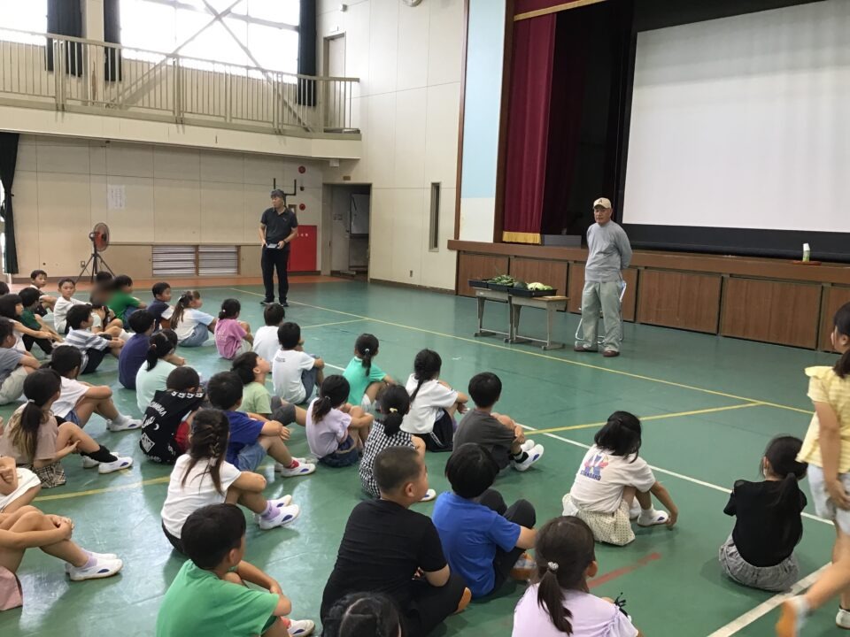 毎年、2年生では野菜について何でも知っている郷津町の牧野さんをお迎えして分かりやすくお話をしていただいています。