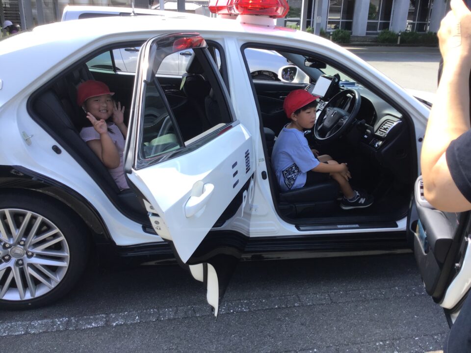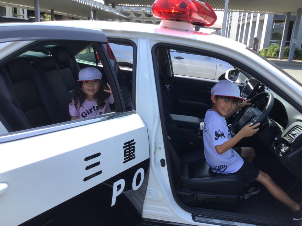 警察官けいさつかんのお仕事しごとくわしくおしえていただいたり、実際じっさいにパトカーをたり、せていただいたりもしました。