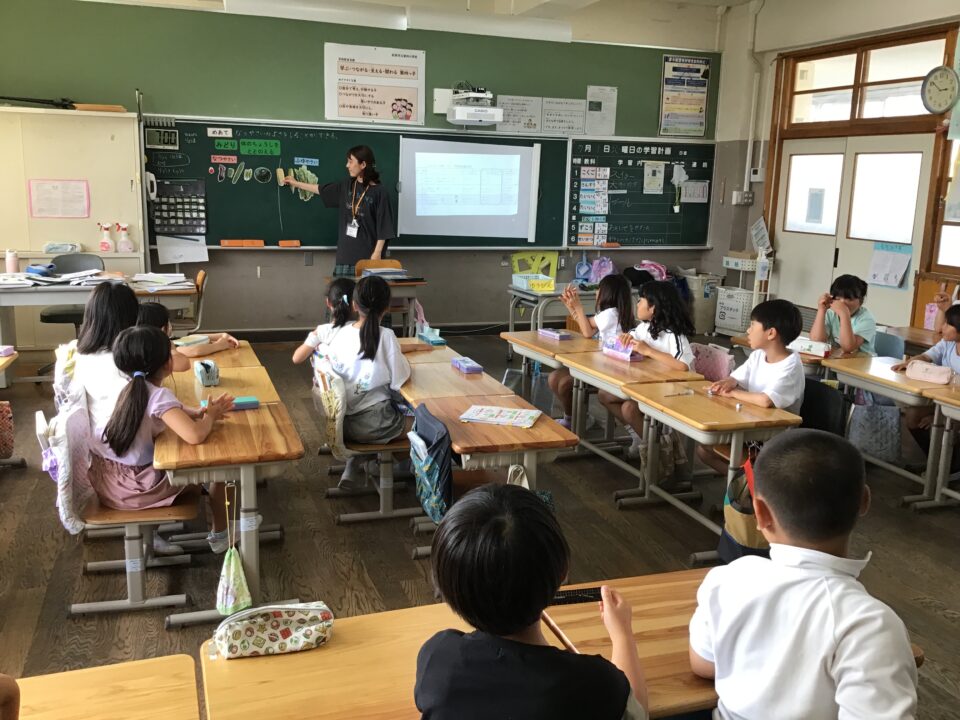 今日きょうは、栄養えいよう先生せんせい一緒いっしょに「夏野菜なつやさいにはどんないものがあるのか」学習がくしゅうしました。