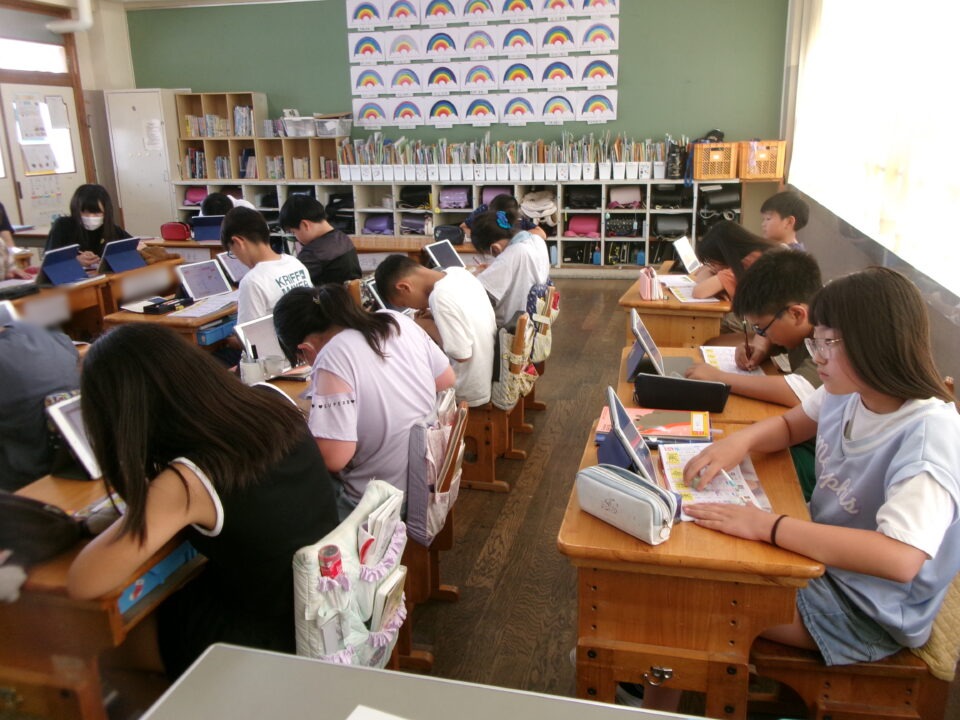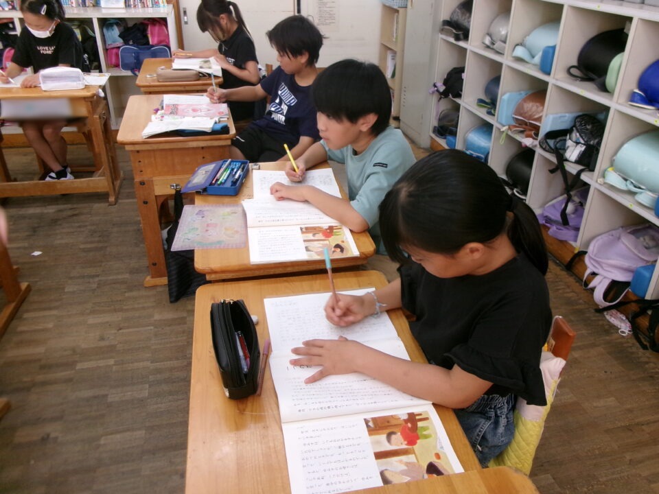 2組は、国語で一人ひとりが読んだ感想を書いていました。
