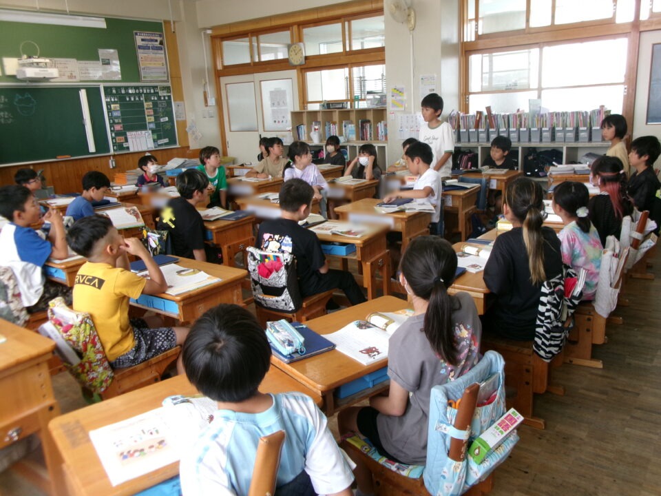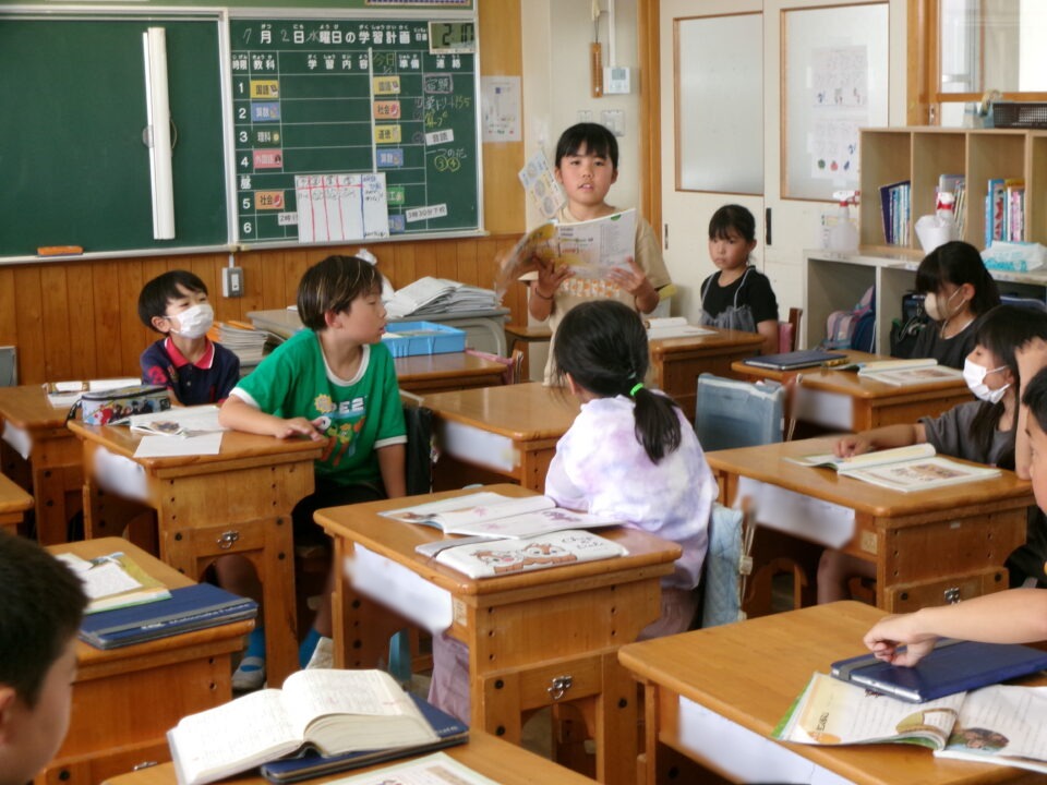 1組は、道徳でした。話す時は、みんなの方を向いて話し、聞く人は話し手を見るのが基本ですが、みんなができていて素晴らしい学習姿勢でした。