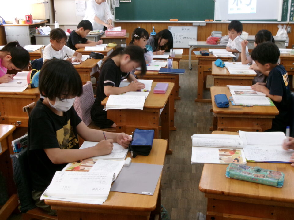 1組は新しい漢字の練習をしていました。覚えようとする姿勢や書く練習する姿が全員というくらい、一生懸命でした。感心します。