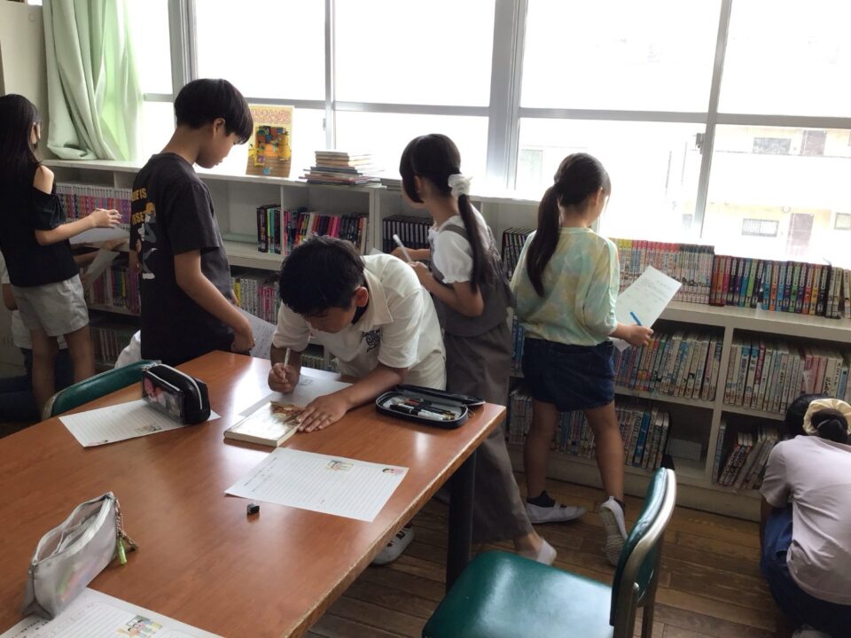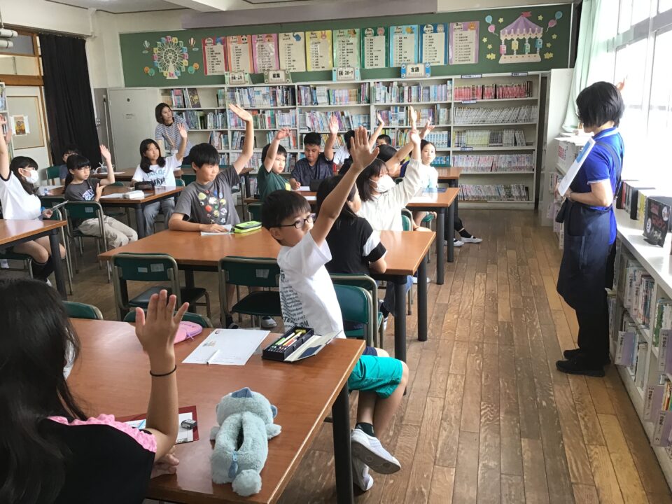 ホーム > 学校活動の様子 5年生(ねんせい) 読書室(どくしょしつ)オリエンテーション 今日(きょう)は、図書館流通(としょかんりゅうつう)センターの司書(ししょ)さんに来(き)ていただき、読書室(どくしょしつ)の使(つか)い方(かた)や本(ほん)の選(えら)び方等(かたなど)のオリエンテーションをしていただきました。 今日(きょう)の給食(きゅうしょく)は、ご飯(はん)(麦入(むぎい)り)、牛乳(ぎゅうにゅう)、マーボーなす、大豆入(だいずい)りサラダでした。 シェアする Twitter でシェア はてなブックマークに保存 LINE でシェア Facebook でシェア Pocket に保存 Feedly で購読 関連投稿 学校活動の様子 人権(じんけん)フォーラムに参加(さんか)しました!6年生(ねんせい) 学校活動の様子 6年生済生会病院へ 学校活動の様子 手(て)すりにクッション材(ざい)を取(と)り付(つ)けました。 学校活動の様子 学習発表会(がくしゅうはっぴょうかい)練習(れんしゅう) 学校活動の様子 学習(がくしゅう)の様子(ようす) 4年生(ねんせい) 学校活動の様子 / コミュニティ・スクール 地域(ちいき)の方(かた)へ『つながる手紙(てがみ)』を渡(わた)しました。 前の投稿 学習(がくしゅう)の様子(ようす) 3年生(ねんせい) 1年生(ねんせい) 次の投稿 6年生(ねんせい) 租税教室(そぜいきょうしつ)