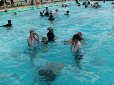 昨日でプール水泳学習は終了し、今日から着衣水泳学習が始まりました。