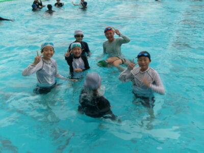 体験が終わったら、服を脱いでプールでみんなと楽しみました。水着になってすごく体が軽くなったことから、服が水を吸うと重くなる感覚を体験できましたね。