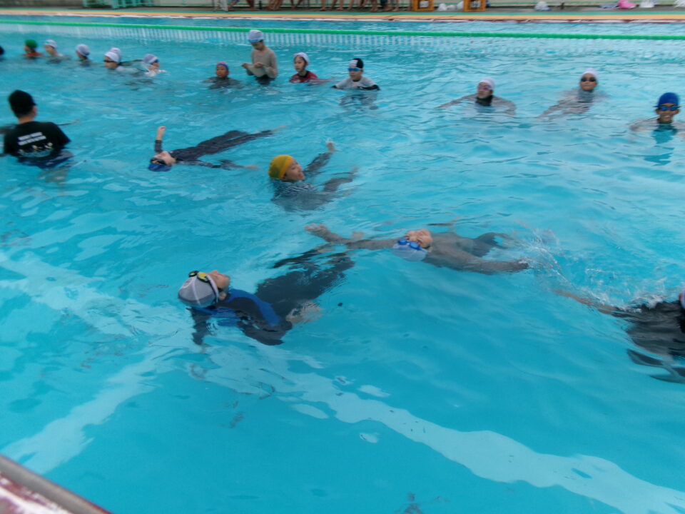 体験が終わったら、服を脱いでプールでみんなと楽しみました。水着になってすごく体が軽くなったことから、服が水を吸うと重くなる感覚を体験できましたね。
