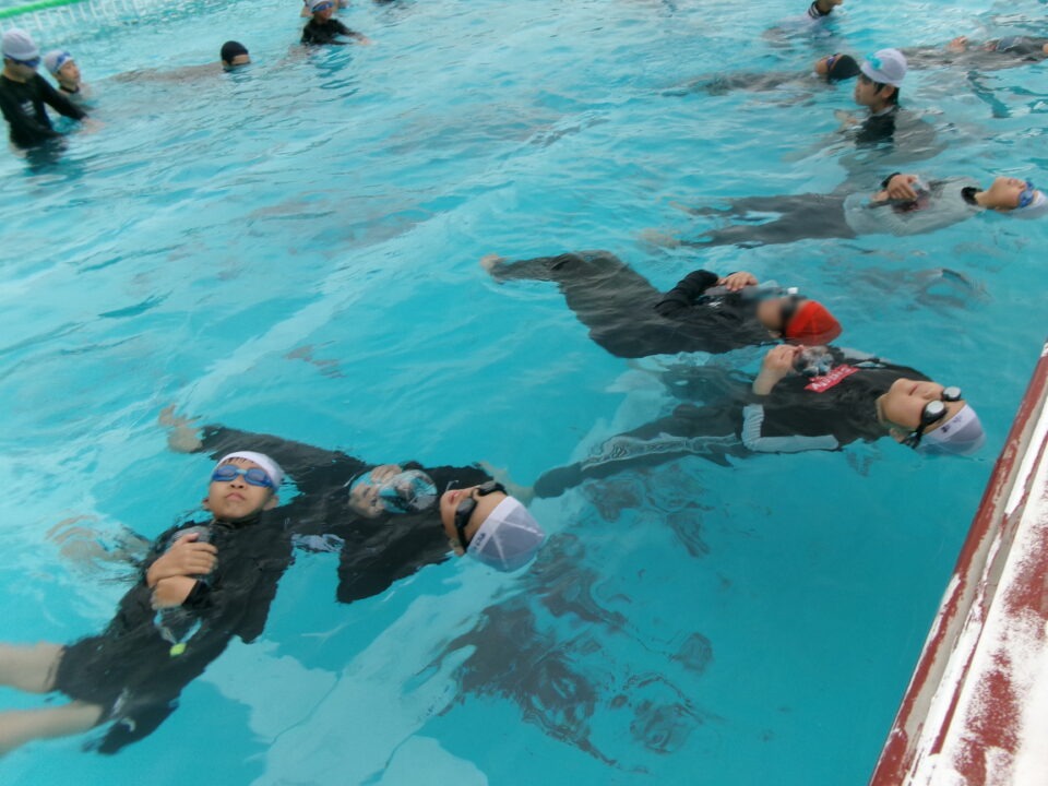 体験たいけんわったら、ふくいでプールでみんなとたのしみました。水着みずぎになってすごくからだかるくなったことから、ふくみずうとおもくなる感覚かんかく体験たいけんできましたね。