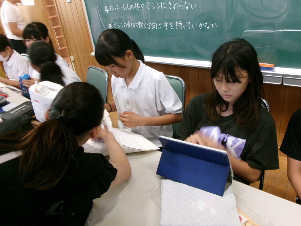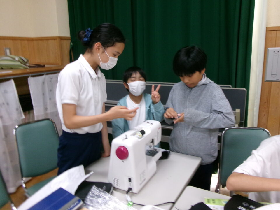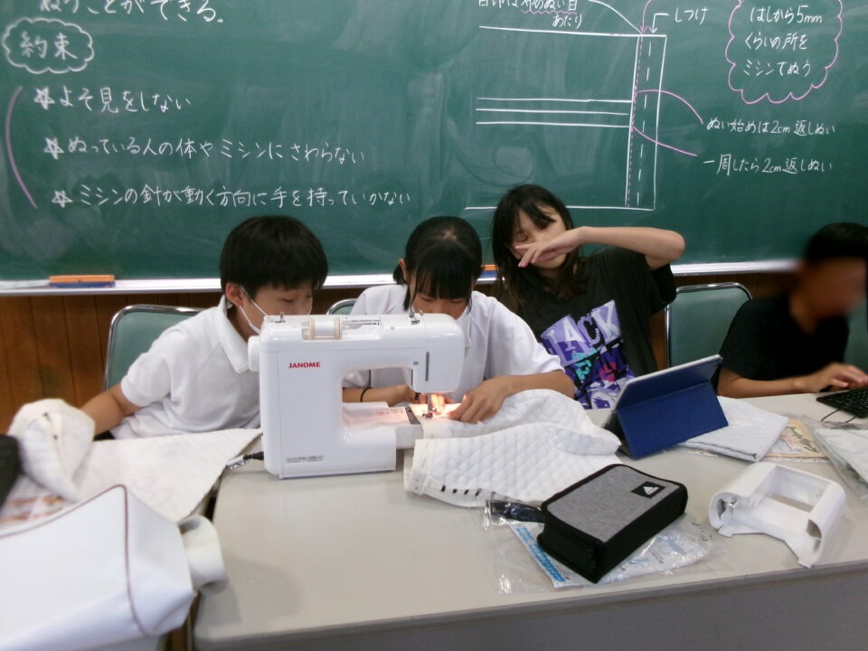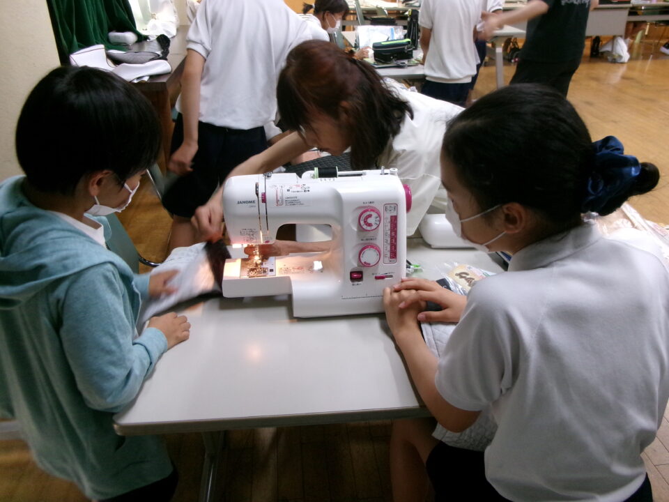 6年生は、家庭科でトートバッグ作りをしています。