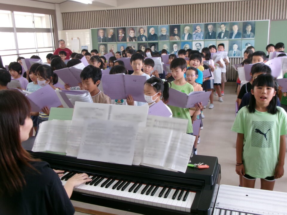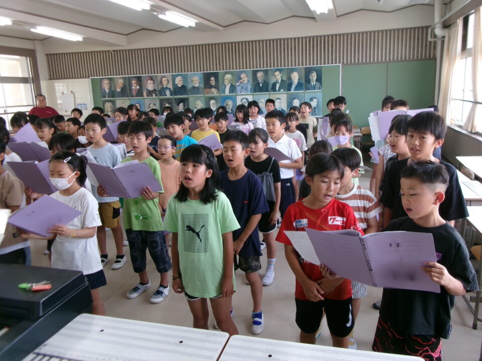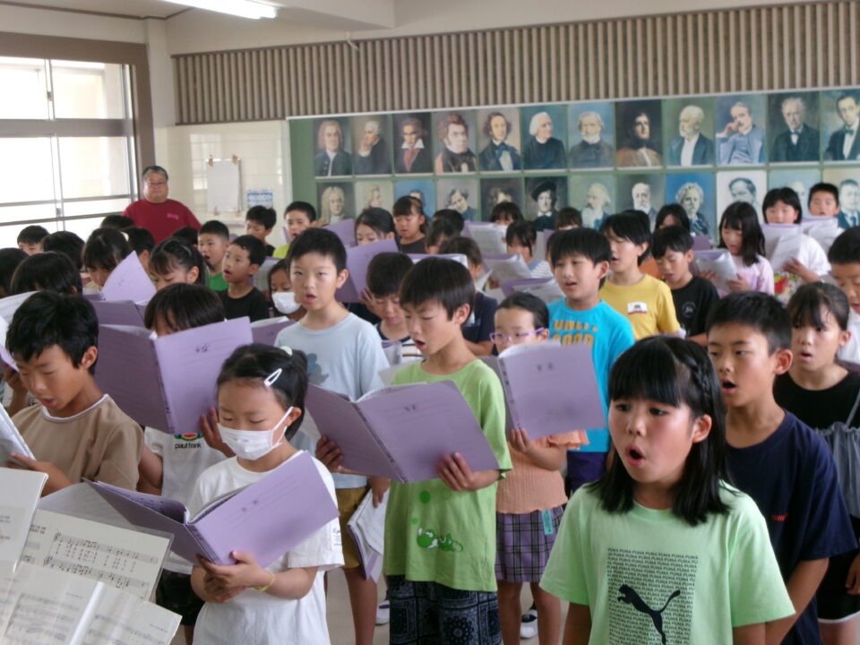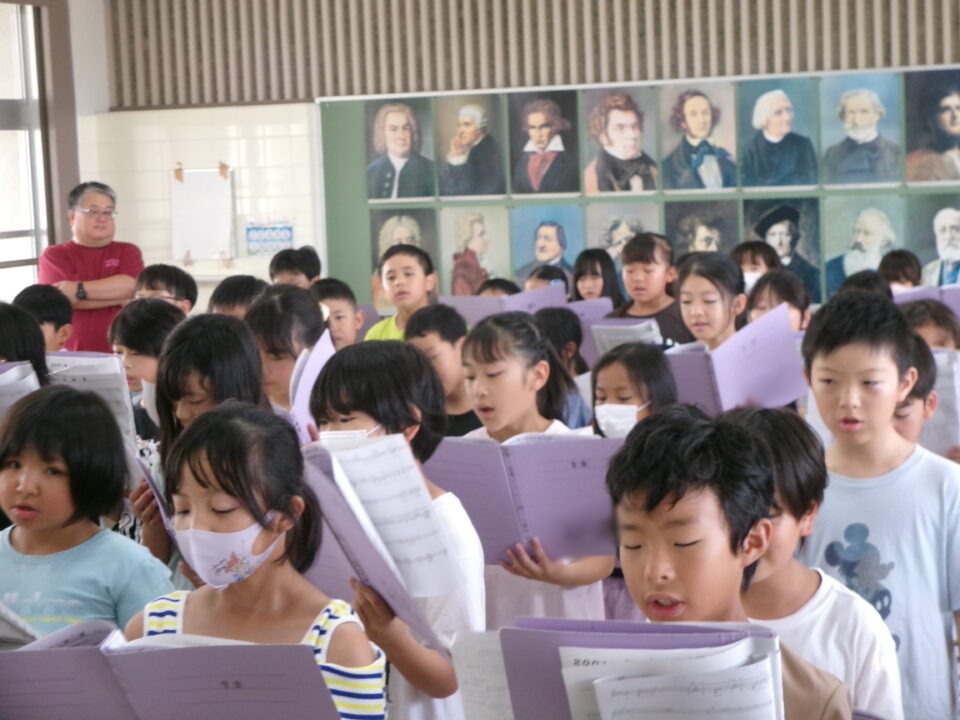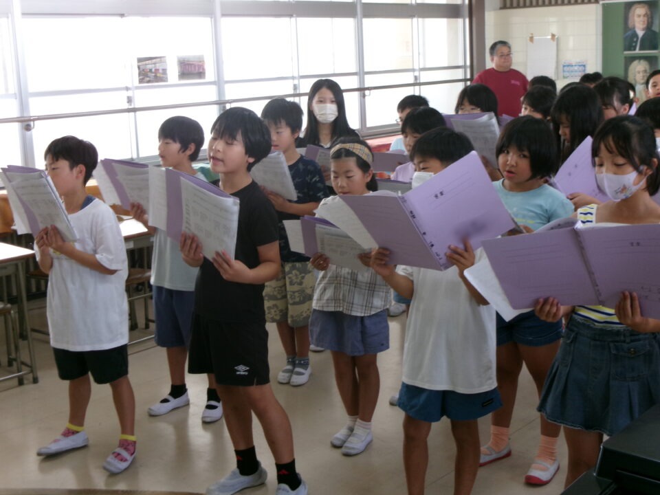 特に1年生~3年生はこれから練習を始めるので、見本動画を作成するために4年生の合唱を収録しました。