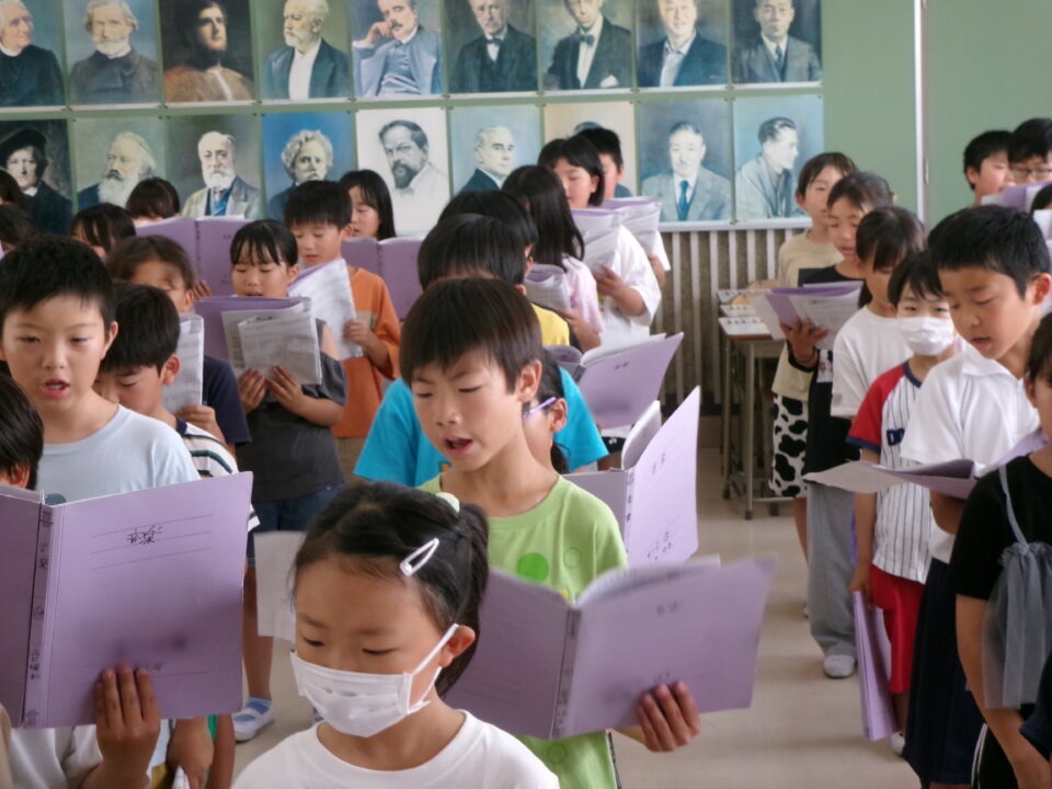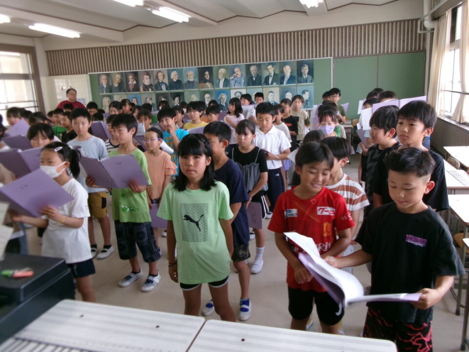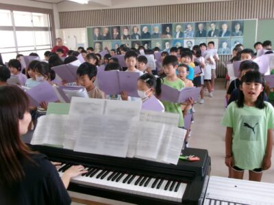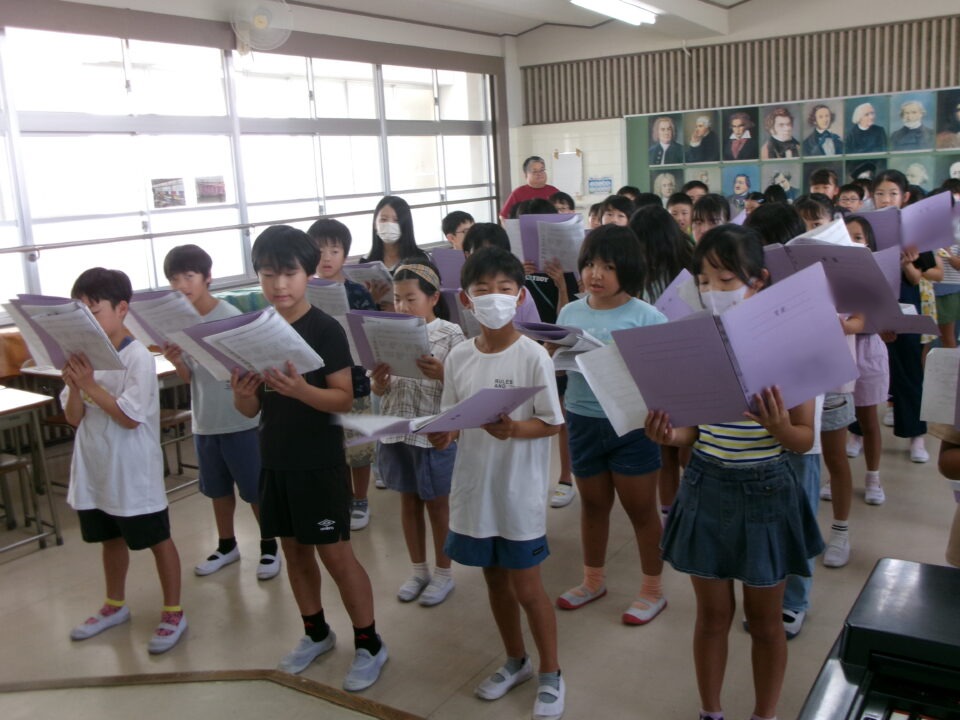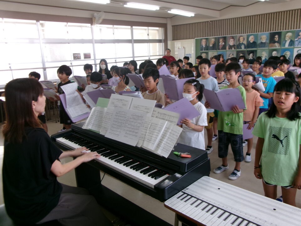 特に1年生~3年生はこれから練習を始めるので、見本動画を作成するために4年生の合唱を収録しました。