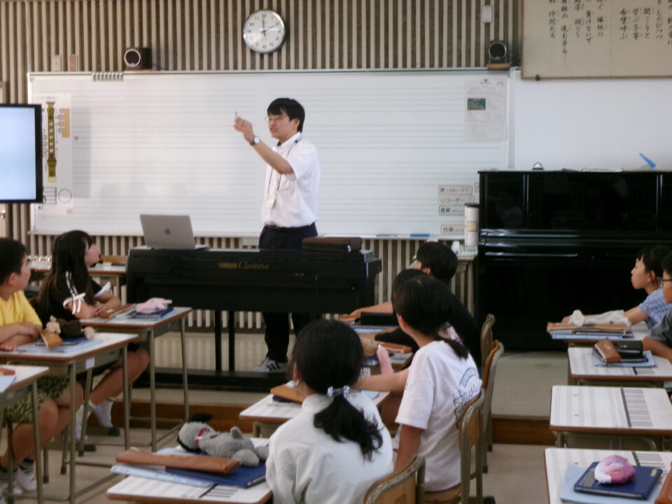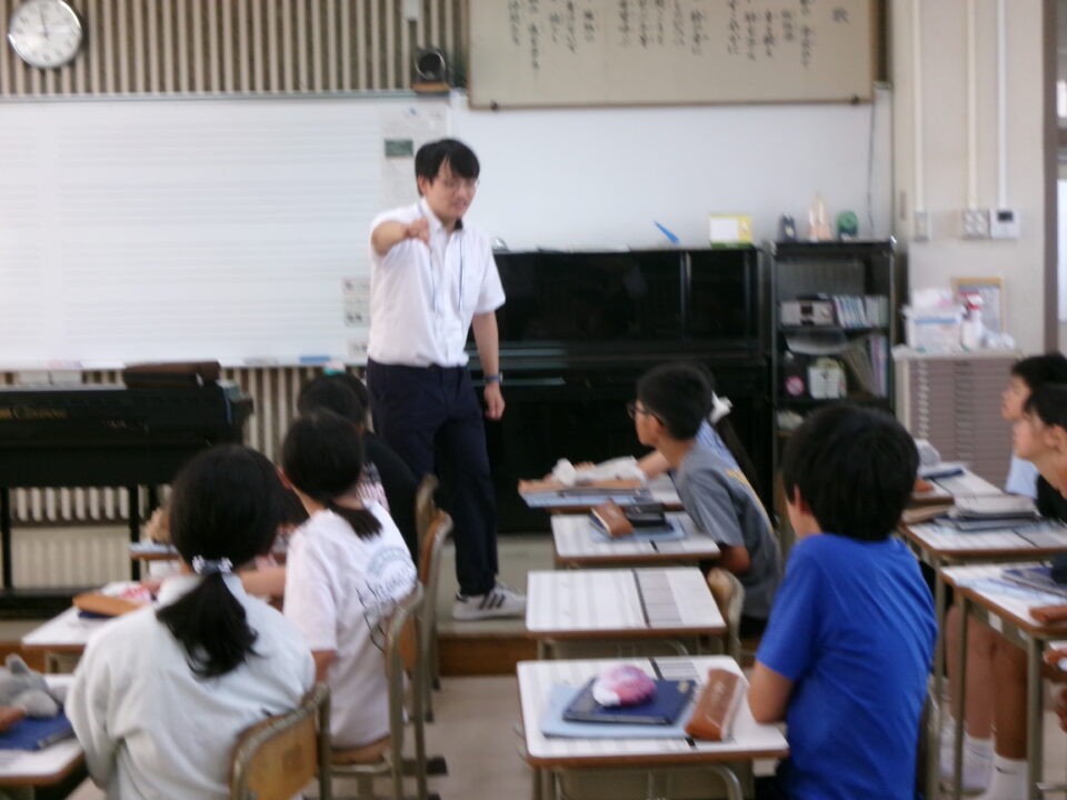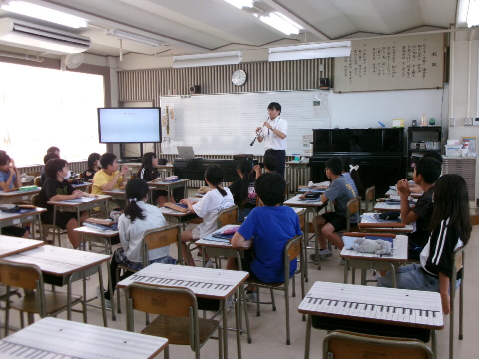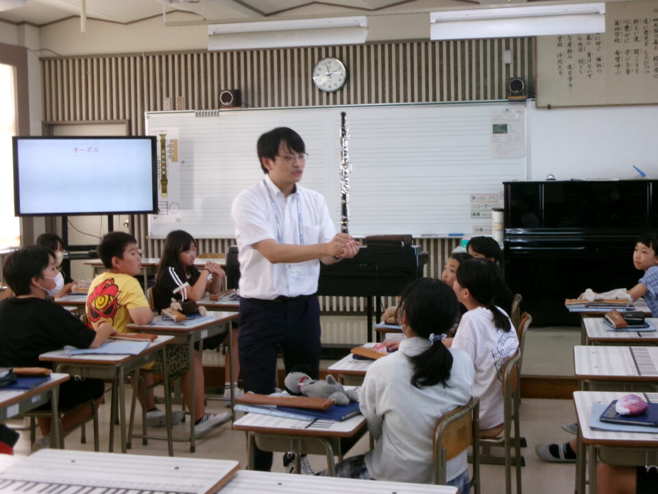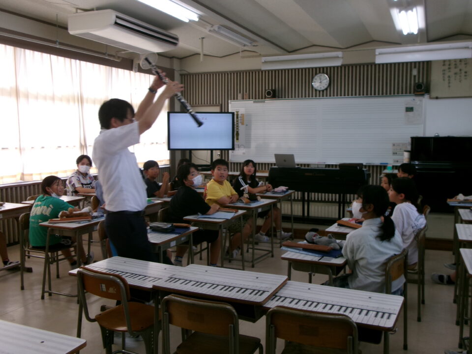 ホーム > 学校活動の様子 鎌中(かまちゅう)の先生(せんせい)が来(き)てくれました。 今日(きょう)は、異校種交流(いこうしゅこうりゅう)ということで、鎌田中学校(かまだちゅうがっこう)の先生(せんせい)が授業(じゅぎょう)に来(き)てくれました。 5-3で音楽(おんがく)の授業(じゅぎょう)でした。 先生(せんせい)は、オーボエの奏者(そうしゃ)でもあり、みんなにいろいろな曲(きょく)を聞(き)かせてくれました。 シェアする Twitter でシェア はてなブックマークに保存 LINE でシェア Facebook でシェア Pocket に保存 Feedly で購読 関連投稿 学校活動の様子 楽(たの)しかった運動会(うんどうかい)!!№2 学校活動の様子 人権(じんけん)フォーラムを開催(かいさい)しました。 学校活動の様子 学習(がくしゅう)の様子(ようす) 1年(ねん)・5年(ねん)・6年(ねん) 学校活動の様子 学習(がくしゅう)の様子(ようす) 4年生(ねんせい) 学校活動の様子 1年生社会見学 学校活動の様子 5年生田植え 前の投稿 着衣水泳(ちゃくいすいえい) 1年生(ねんせい) 次の投稿 6-2 家庭科(かていか)トートバッグ作(づく)り