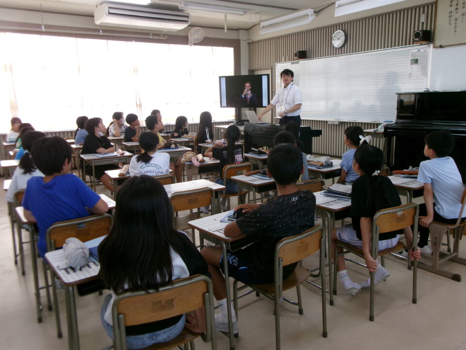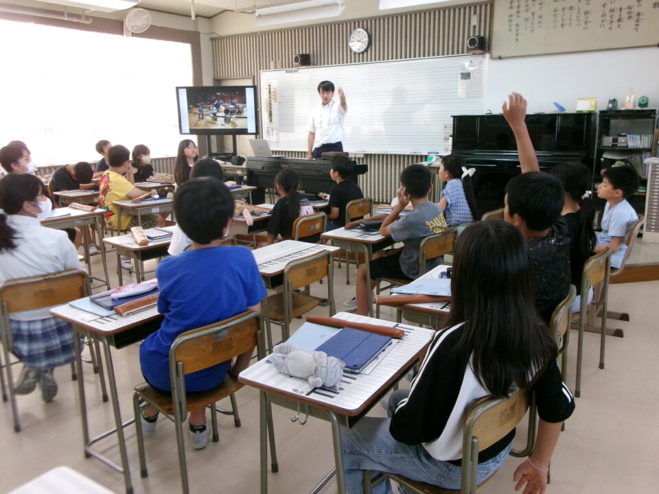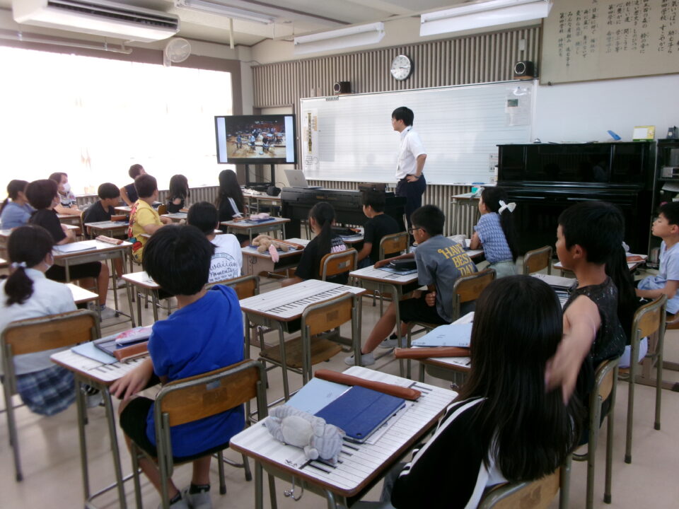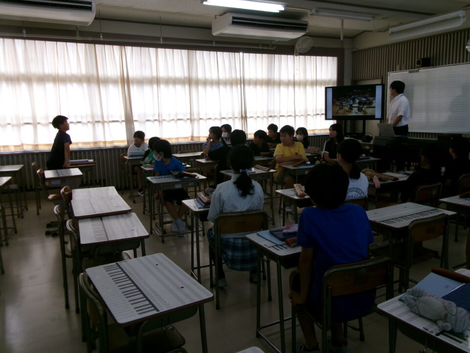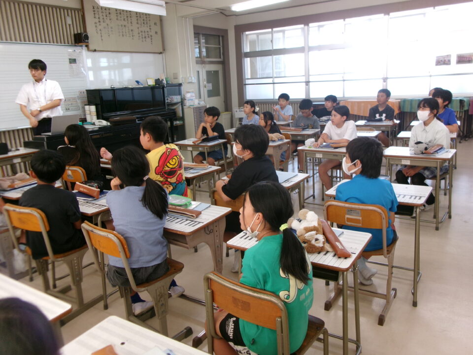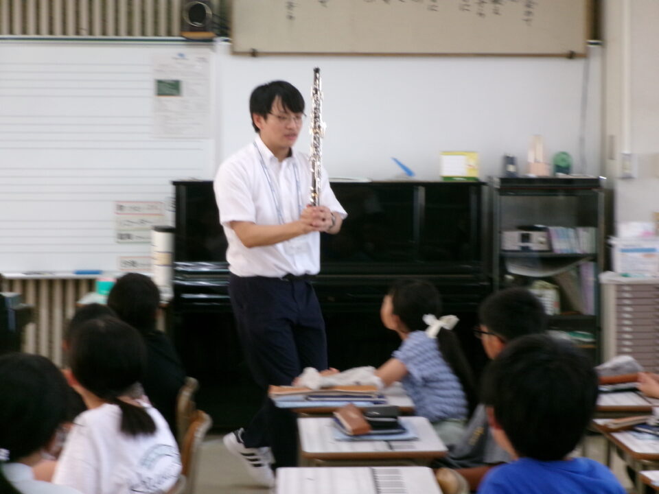 ホーム > 学校活動の様子 鎌中(かまちゅう)の先生(せんせい)が来(き)てくれました。 今日(きょう)は、異校種交流(いこうしゅこうりゅう)ということで、鎌田中学校(かまだちゅうがっこう)の先生(せんせい)が授業(じゅぎょう)に来(き)てくれました。 5-3で音楽(おんがく)の授業(じゅぎょう)でした。 先生(せんせい)は、オーボエの奏者(そうしゃ)でもあり、みんなにいろいろな曲(きょく)を聞(き)かせてくれました。 シェアする Twitter でシェア はてなブックマークに保存 LINE でシェア Facebook でシェア Pocket に保存 Feedly で購読 関連投稿 学校活動の様子 楽(たの)しかった運動会(うんどうかい)!!№2 学校活動の様子 人権(じんけん)フォーラムを開催(かいさい)しました。 学校活動の様子 学習(がくしゅう)の様子(ようす) 1年(ねん)・5年(ねん)・6年(ねん) 学校活動の様子 学習(がくしゅう)の様子(ようす) 4年生(ねんせい) 学校活動の様子 1年生社会見学 学校活動の様子 5年生田植え 前の投稿 着衣水泳(ちゃくいすいえい) 1年生(ねんせい) 次の投稿 6-2 家庭科(かていか)トートバッグ作(づく)り