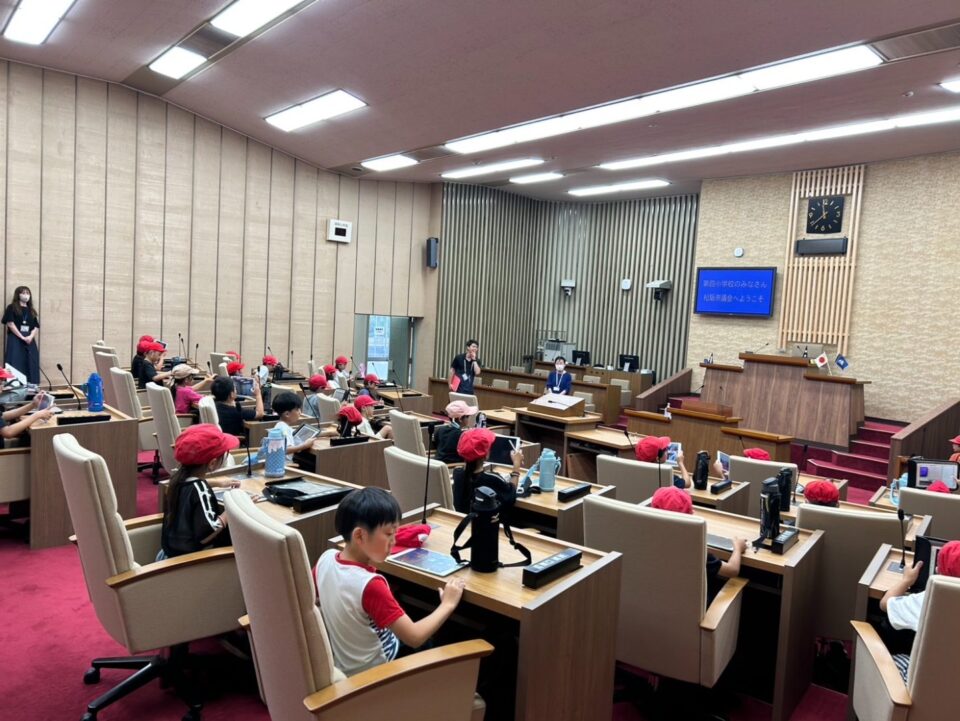 市長さんのお部屋や応接室、議会をするところ、記者会見をするところなど、市役所の中のふだん見ることができない部屋をたくさん見せていただき、説明をしていただきました。