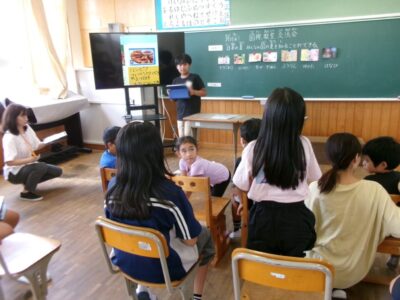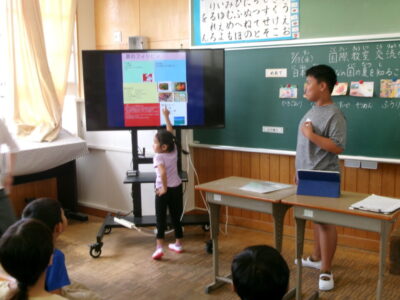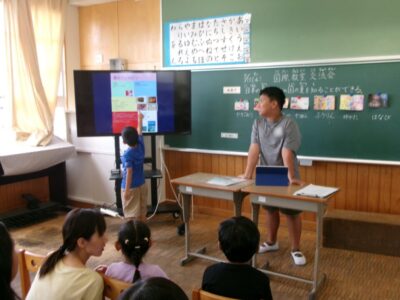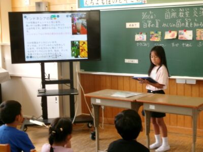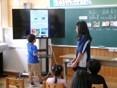 第四小学校には、外国から日本に来て一緒に勉強するお友だちがいます。