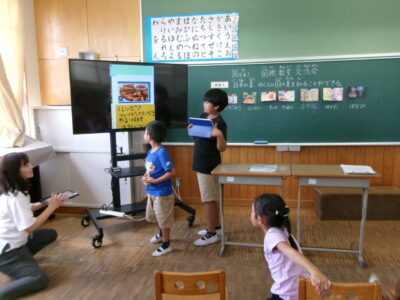 今日は、国際教室に集まり、日本の夏やそれぞれルーツのある国の夏について紹介し合いました。