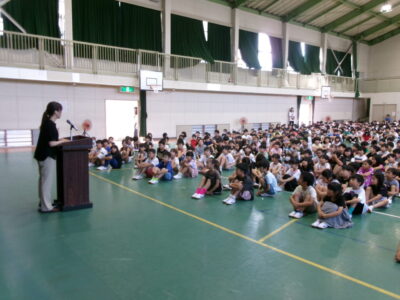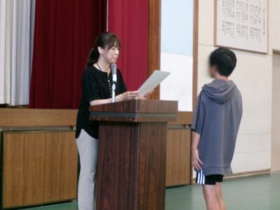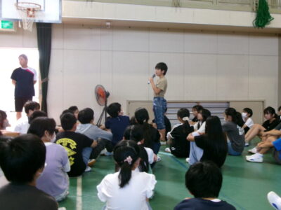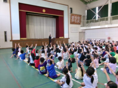「夏休みのやくそく」についてもクイズを交えて話がありました。自分や友だちを守るための約束です。気を付けて守っていきましょう。