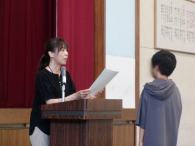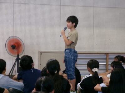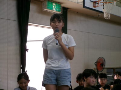 集会では、かまあいトークをして自分自身のふり返りを行い、代表で6年生のお兄さん、お姉さんが発表しました。