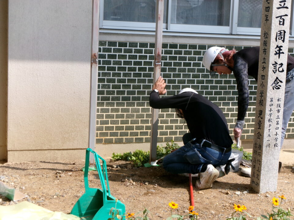 そのタイムカプセルが埋められていることを30年間、知らせるために看板を設置します。先日は、石碑を建てました。