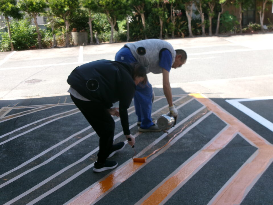 毎日毎日登下校まいにちまいにちとうげこう使つかいますので、黄色きいろのラインがえかかっていてにくくなっていましたので、今日きょう午後ごごからなおしをしました。