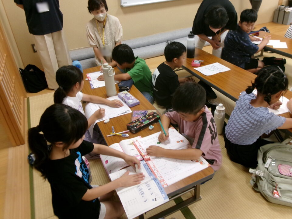 地域交流センターにおいて、第四地区に住んでいる子どもたち対象に『夏休み学習会』がありました。