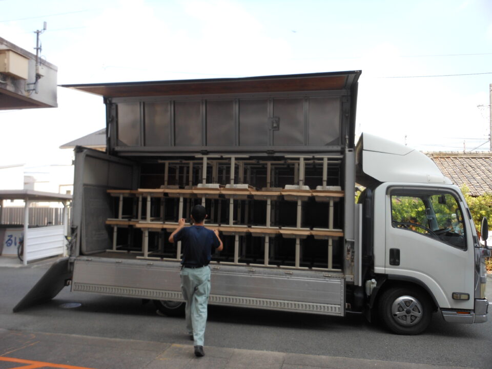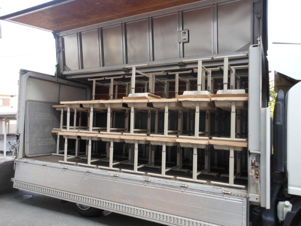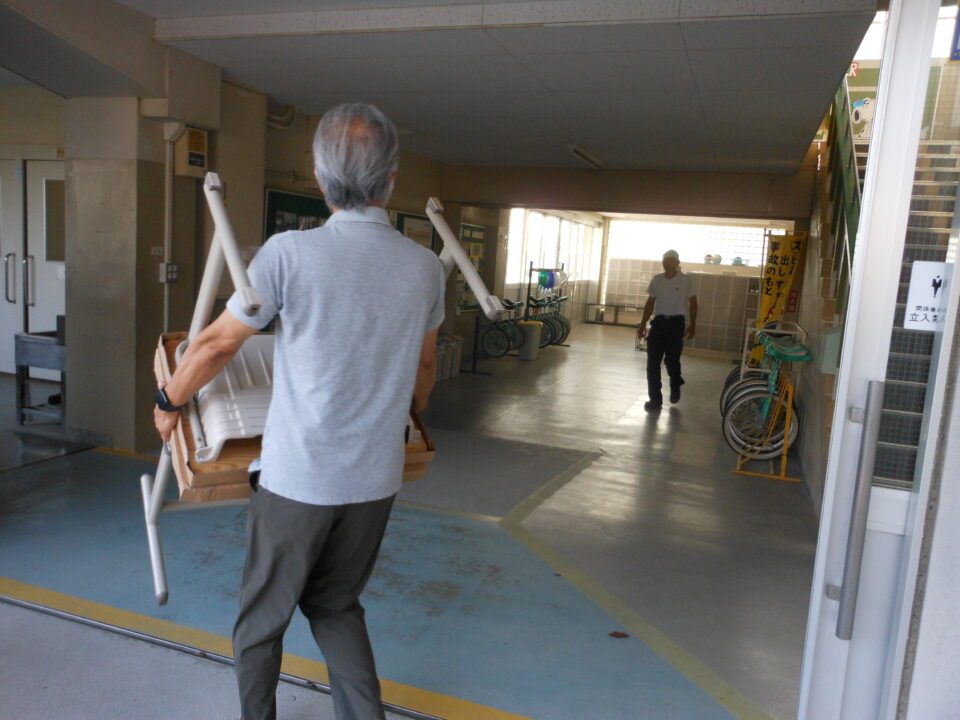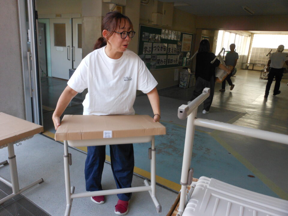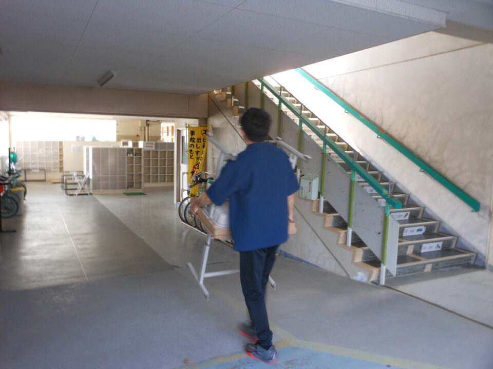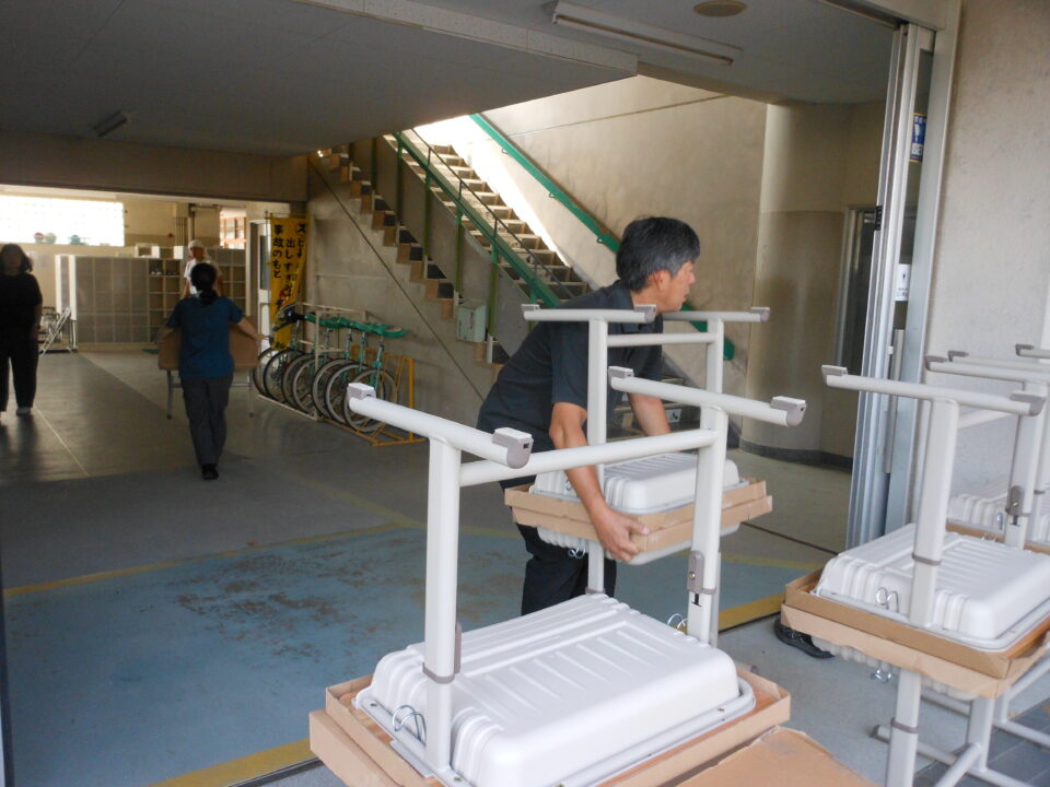 あたらしいつくえ職員しょくいんきずをつけないように細心さいしん注意ちゅういはらって、1年生教室ねんせいきょうしつはこれました。