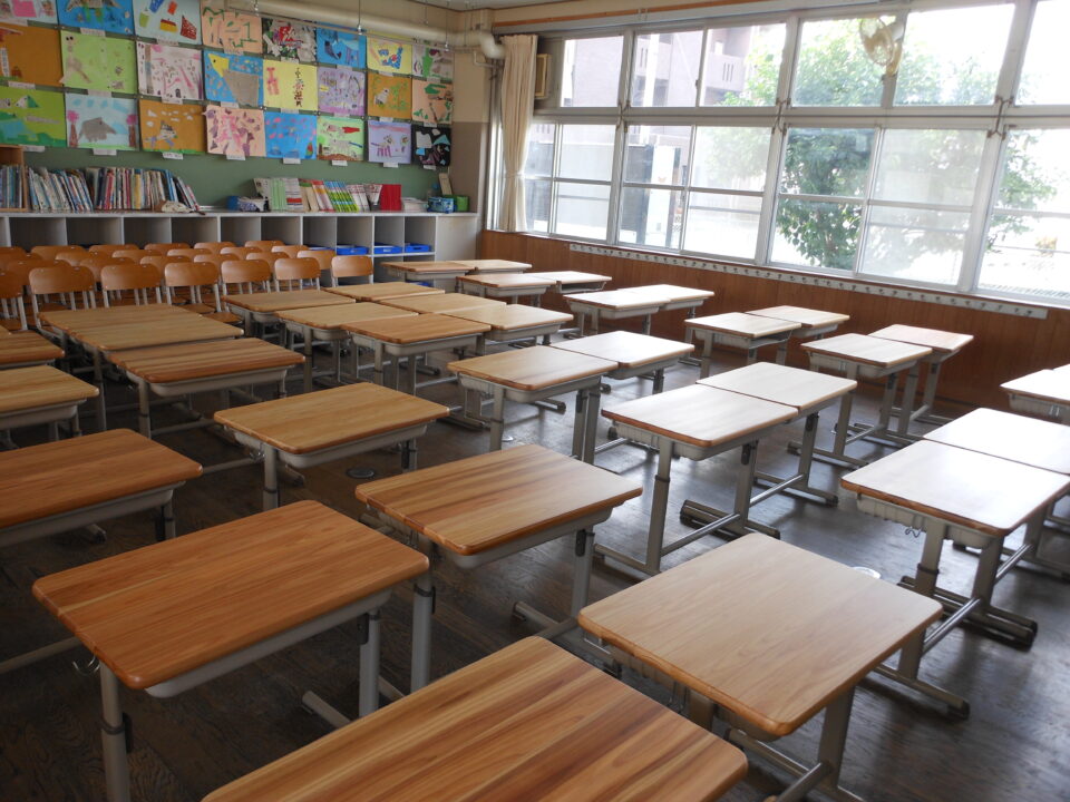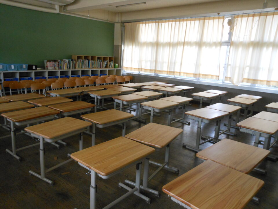 年生教室ねんせいきょうしつあたらしいつくえがはいりました
