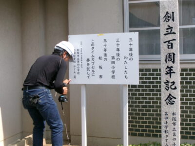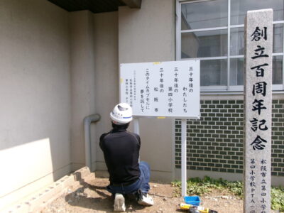 ホーム > 学校活動の様子 タイムカプセル看板(かんばん)を設置(せっち)しました! 10月(がつ)14日(か)(火(か))に収納(しゅうのう)するタイムカプセルが30年(ねん)の年月(ねんげつ)が経(た)っても分(わ)かるように看板(かんばん)を設置(せっち)しました。 シェアする Twitter でシェア はてなブックマークに保存 LINE でシェア Facebook でシェア Pocket に保存 Feedly で購読 関連投稿 学校活動の様子 1年生 タブレット学習 学校活動の様子 委員会活動 学校活動の様子 授業風景 学校活動の様子 タブレット端末を使って 学校活動の様子 1-2学校(がっこう)たんけん 学校活動の様子 5年生宿泊体験学習 前の投稿 1年生教室(ねんせいきょうしつ)に新(あたら)しい机(つくえ)がはいりました 次の投稿 創立(そうりつ)100周年記念(しゅうねんきねん)看板設置(かんばんせっち)