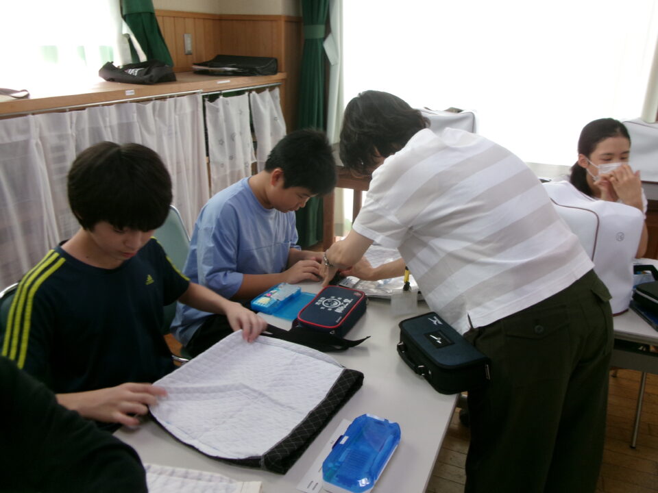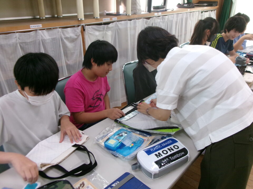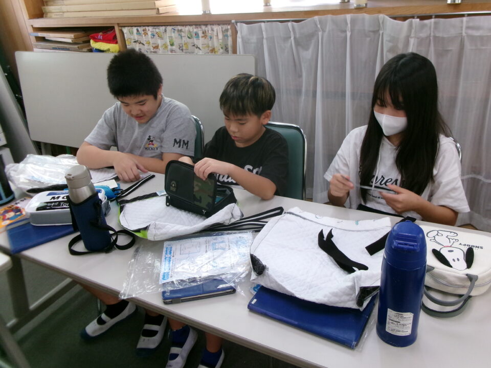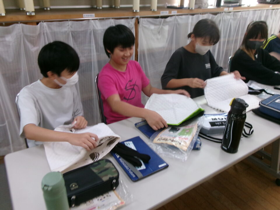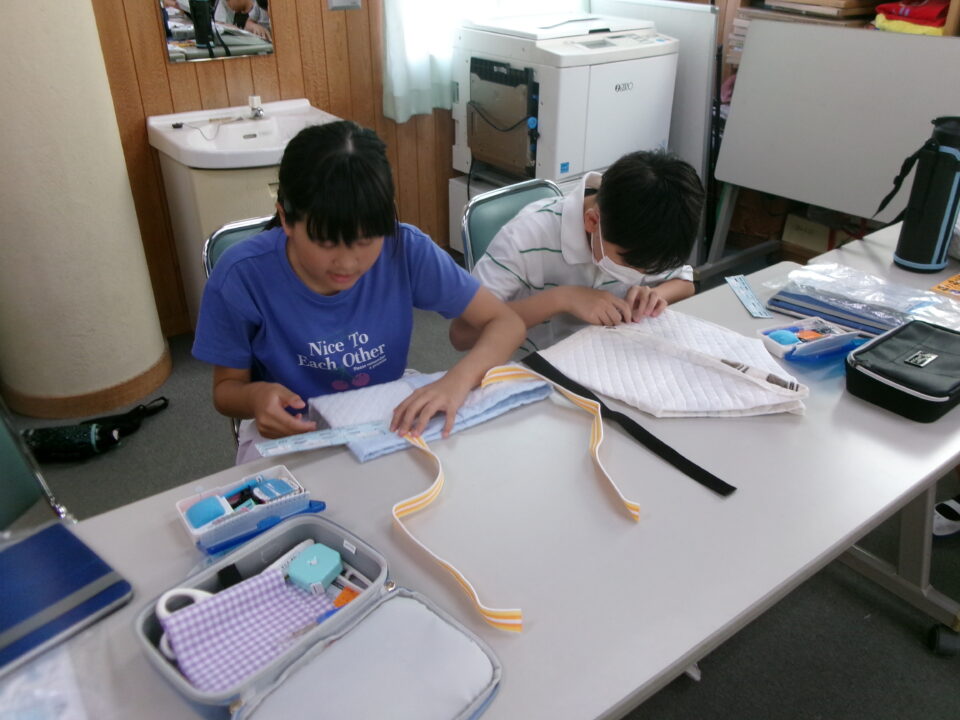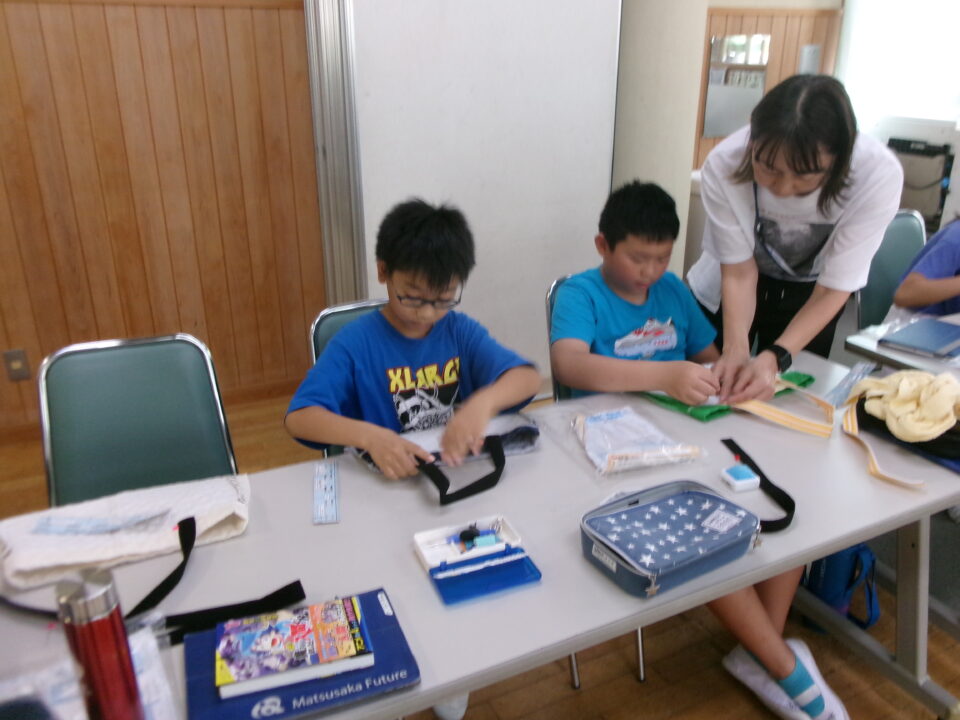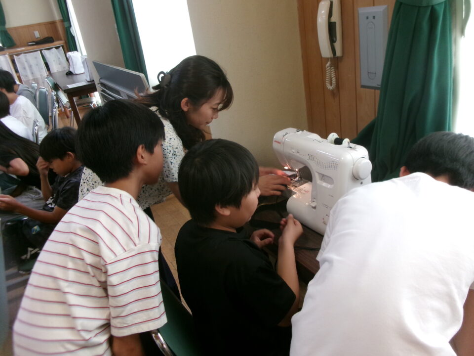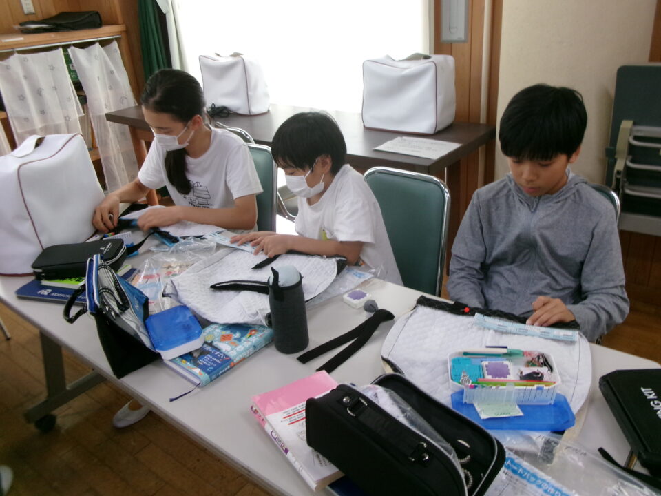 今日は、CSおうえん隊の方にも来ていただき、トートバッグ作りの続きをしました。底のマチの部分や持ち手をつけるのをミシンを使って縫いました。