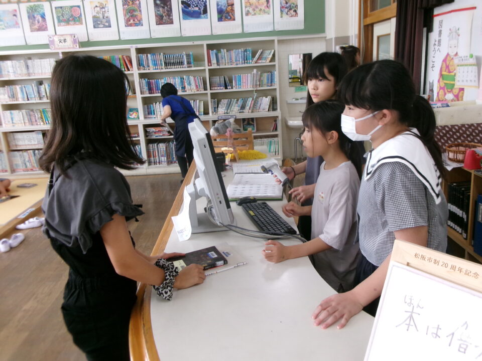 初日の20分休みには、読書をしようと本を借りに来た子がたくさいました。