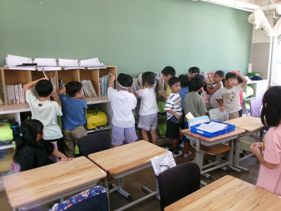 くみでは、学習がくしゅうまえほん整頓せいとんをみんなでしました。きれいになりました。