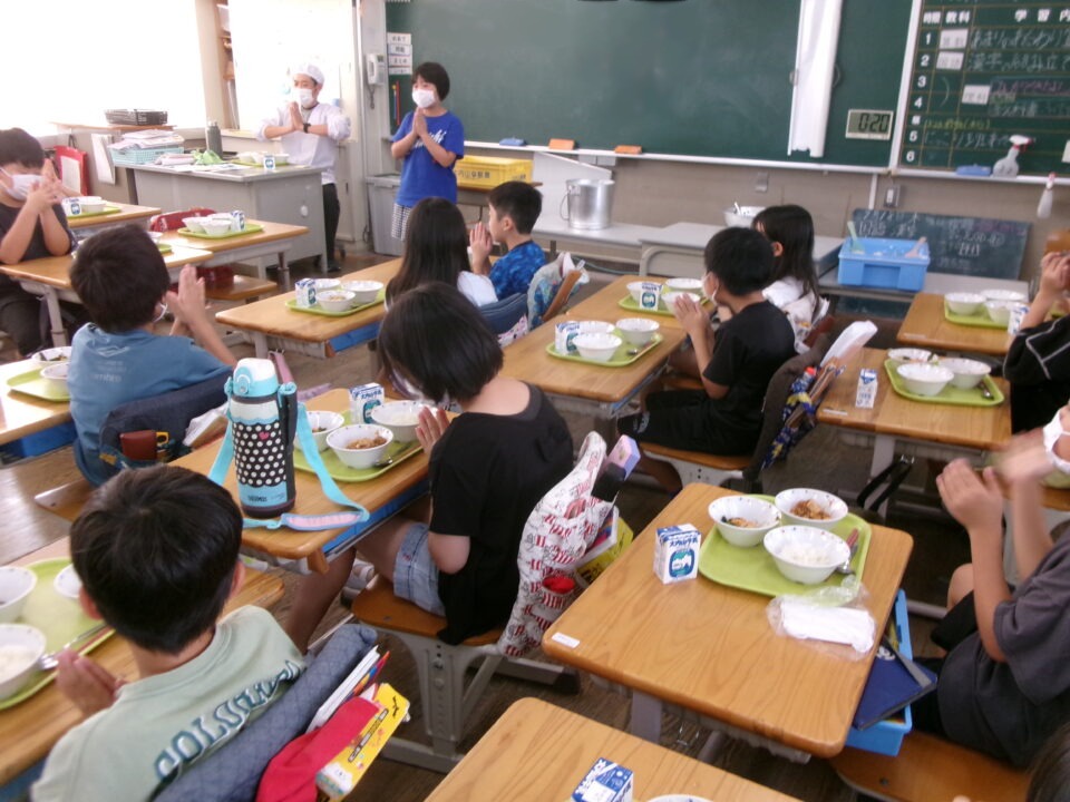 日直にっちょくさんがまえて、「いただきます」の挨拶あいさつです。