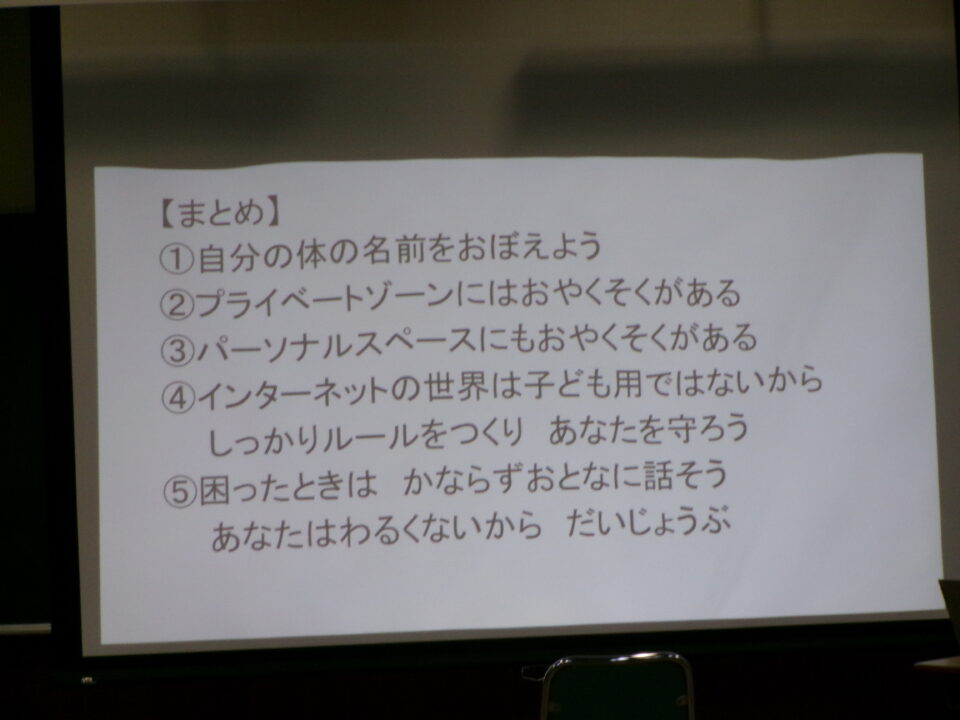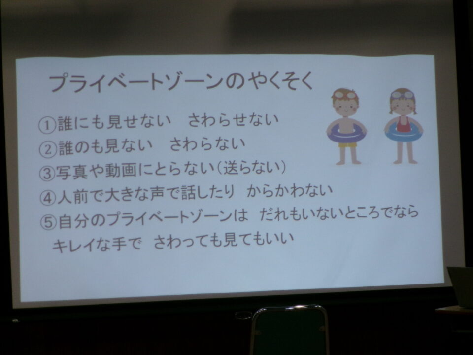 プライベートゾーンについては、昨年も教えてもらっていますね。自分を守るための大切な約束です。一人ひとりが守れば、周りの人も誰も傷つきませんね。