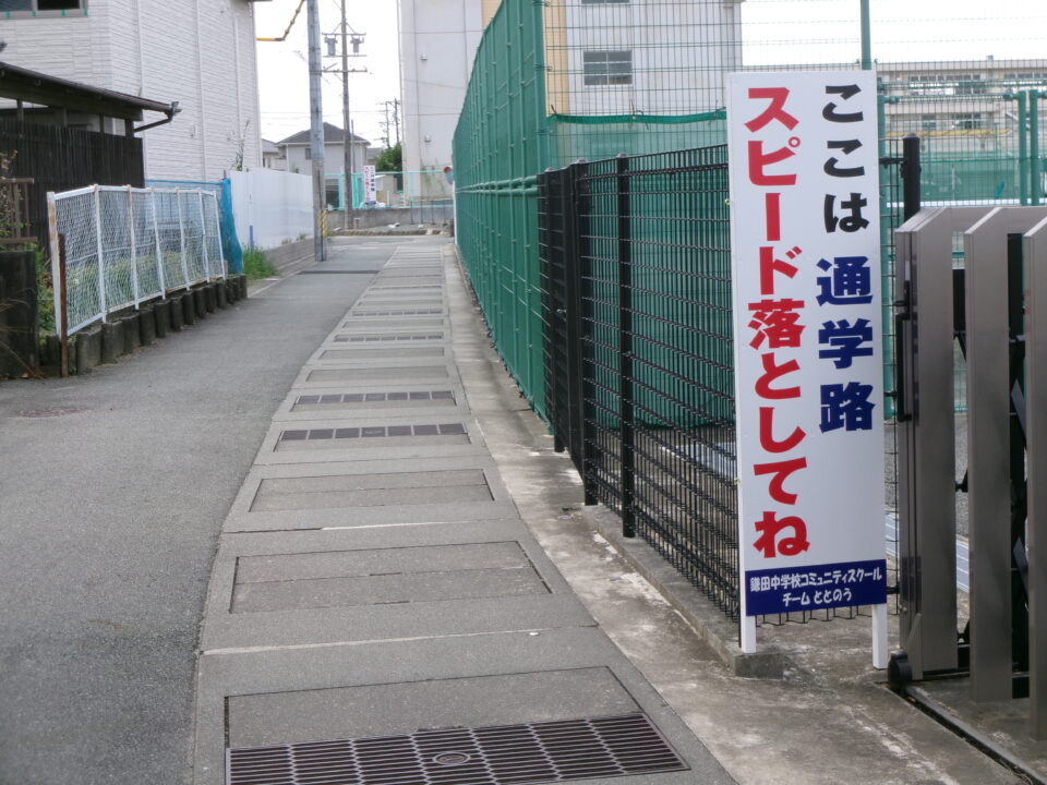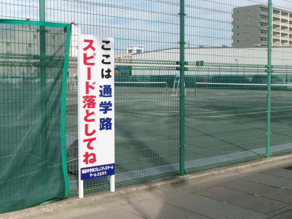 ホーム > 学校活動の様子 / コミュニティ・スクール 通学路(つうがくろ)に看板(かんばん)を設置(せっち)しました。 学校(がっこう)の給食室横(きゅうしょくしつよこ)の西門(にしもん)からローゼンボルグさん横(よこ)までの細(ほそ)い道(みち)は、通学路(つうがくろ)ですが、車(くるま)も通(とお)れる生活道路(せいかつどうろ)になっています。 ドライバーさんや自転車(じてんしゃ)、バイクを運転(うんてん)する方(かた)に気(き)を付(つ)けていただこうと、注意喚起(ちゅういかんき)の看板(かんばん)を設置(せっち)しました。 シェアする Twitter でシェア はてなブックマークに保存 LINE でシェア Facebook でシェア Pocket に保存 Feedly で購読 関連投稿 学校活動の様子 3ー2 社会科校外学習(しゃかいかこうがいがくしゅう)by市役所(しやくしょ) 学校活動の様子 修学旅行 スペイン村出発 学校活動の様子 1年生と鎌田幼稚園・三郷保育園の交流会 学校活動の様子 / コミュニティ・スクール 大谷翔平選手(おおたにしょうへいせんしゅ)グローブ 贈呈式(ぞうていしき) 学校活動の様子 6年2組 出前授業 学校活動の様子 6年生マスク作り 前の投稿 3年生(ねんせい) 社会科(しゃかいか)スーパーの見学(けんがく) 次の投稿 学習(がくしゅう)の様子(ようす)2年生(ねんせい)・1年生(ねんせい)