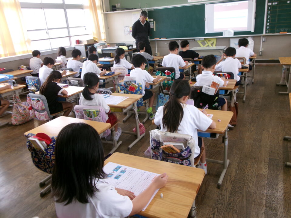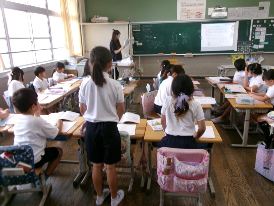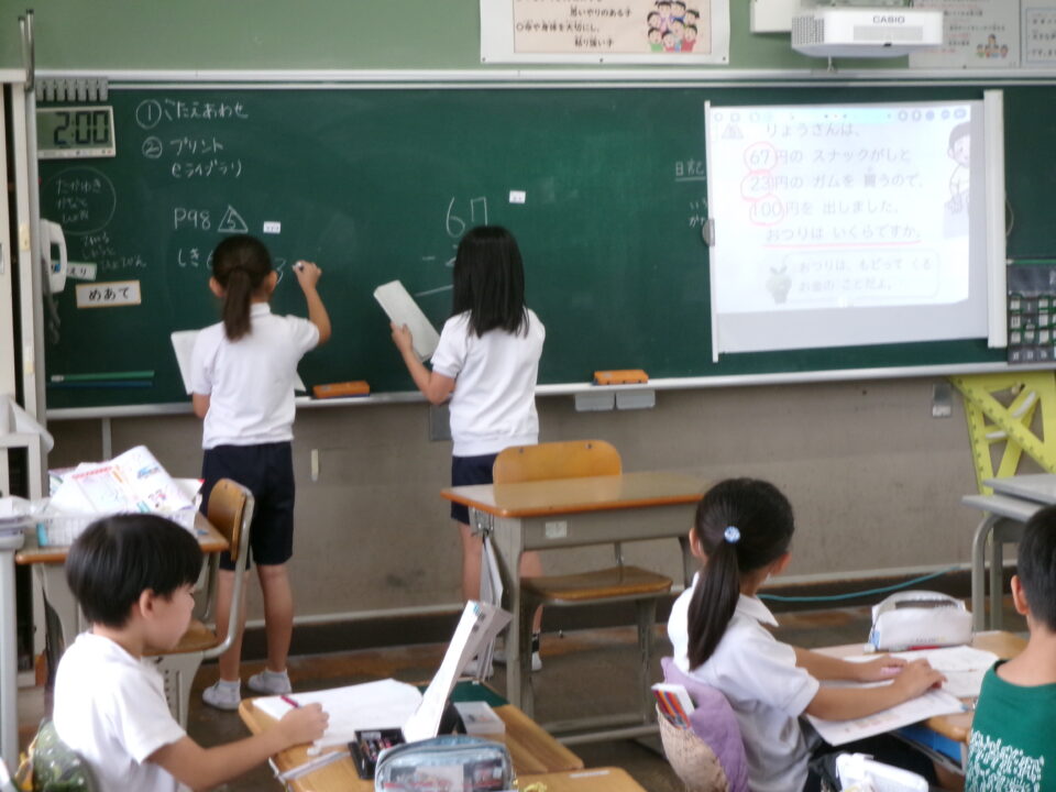 発表は、前へ出て自分の考えを書き、みんなの方を向いて話します。2年生もできるようになってきています。