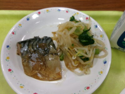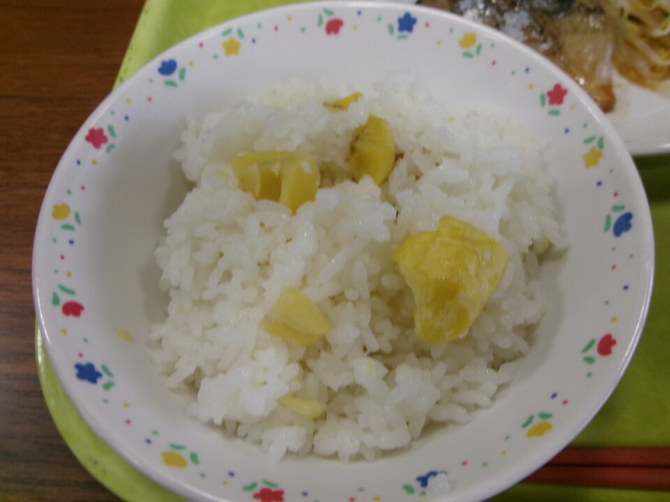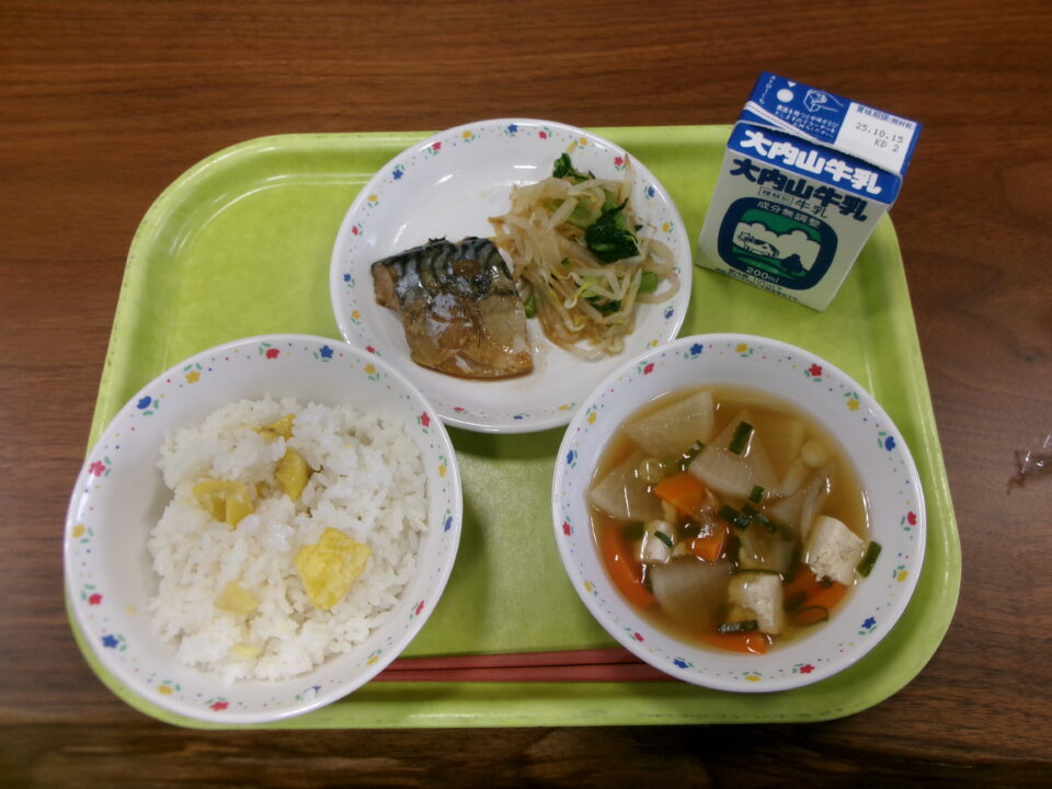 栗ご飯、牛乳、さばの煮付け、チンゲンサイの和え物、お月見汁でした。