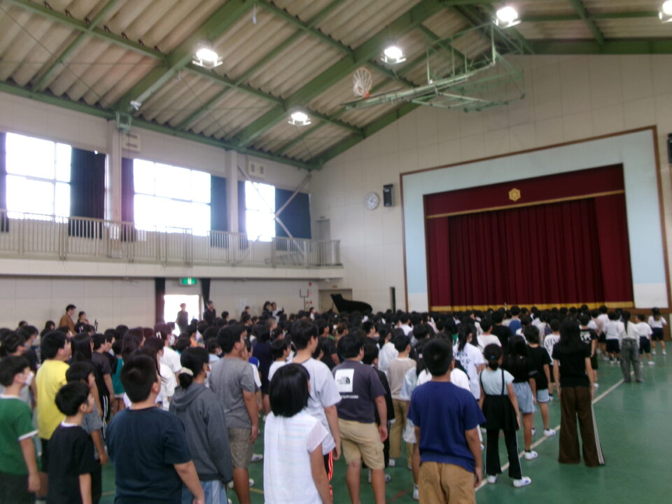 今日は、前期末は10月10日(金)ですが、水曜日の午後の集会の時間を使って前期終業式を行いました。併せて、後期初めの14日(火)は、創立100周年記念イベントがありますので、後期認証式も行いました。