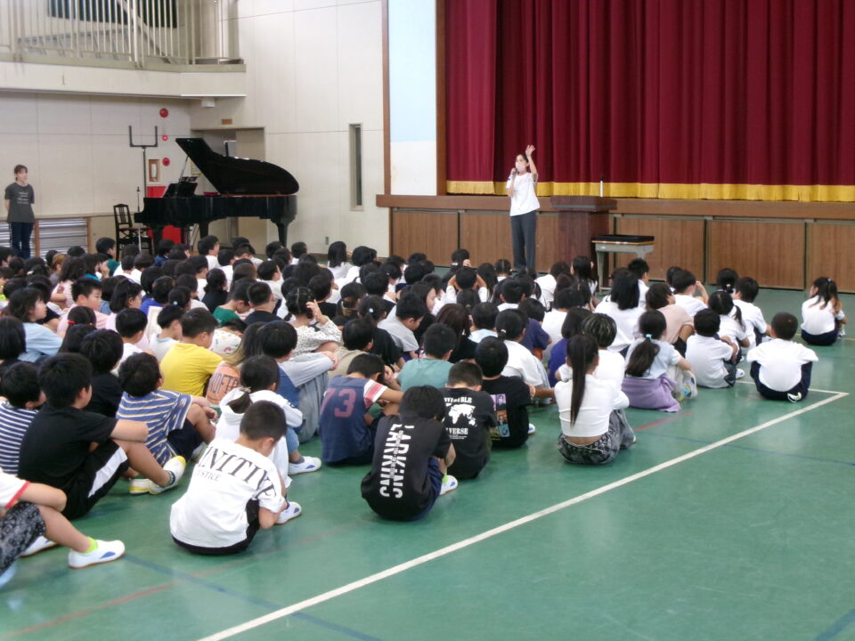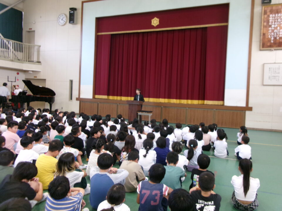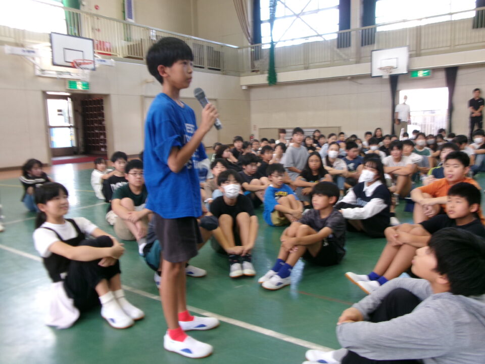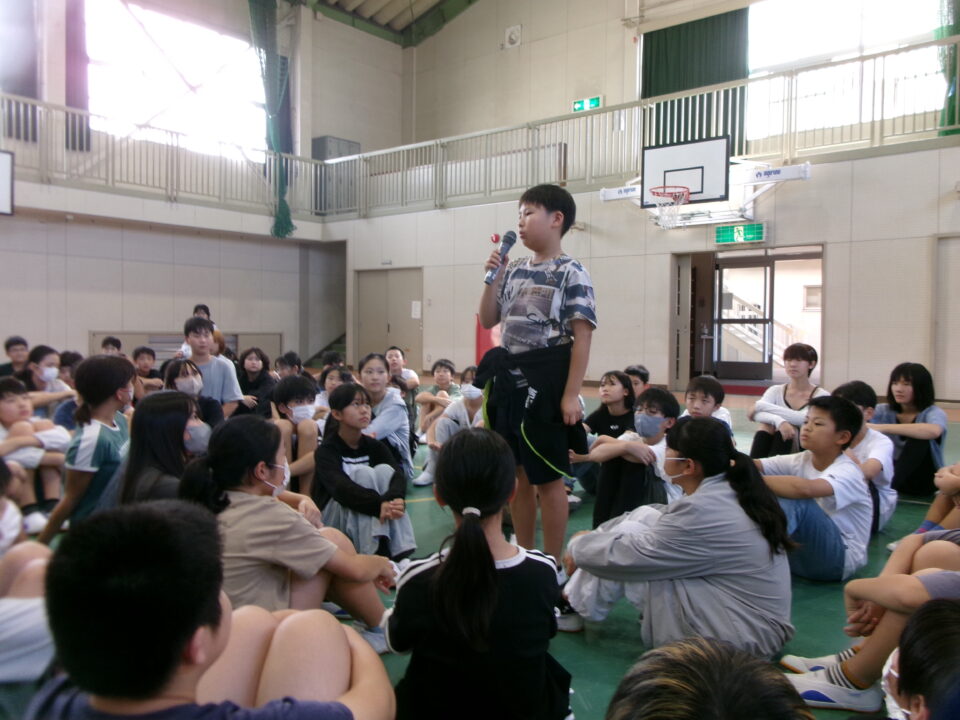 いつもならふり返りをしますが、今日は創立100周年の前期末ですのでタイムカプセルに収納する作品にも書いていると思いますが、30年後の将来に向けて6年生に夢や目標を語ってもらいました。