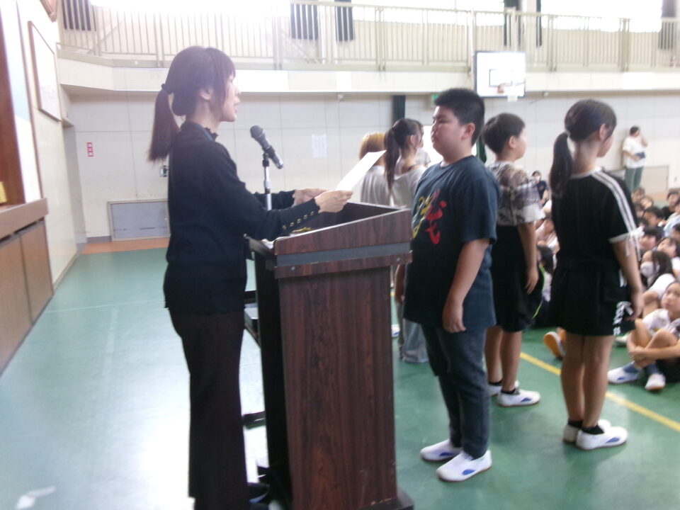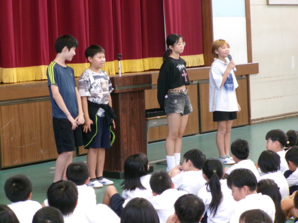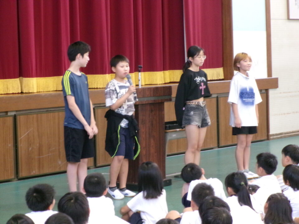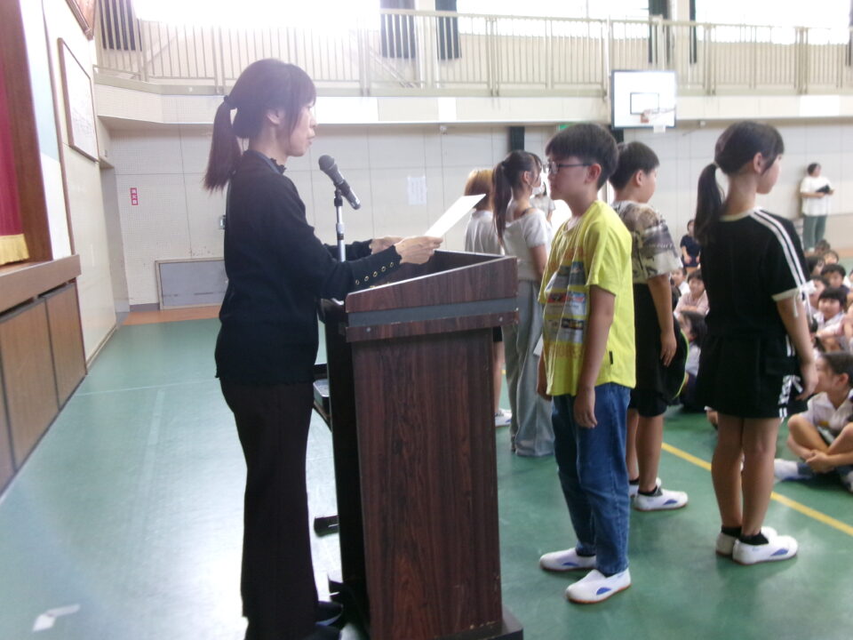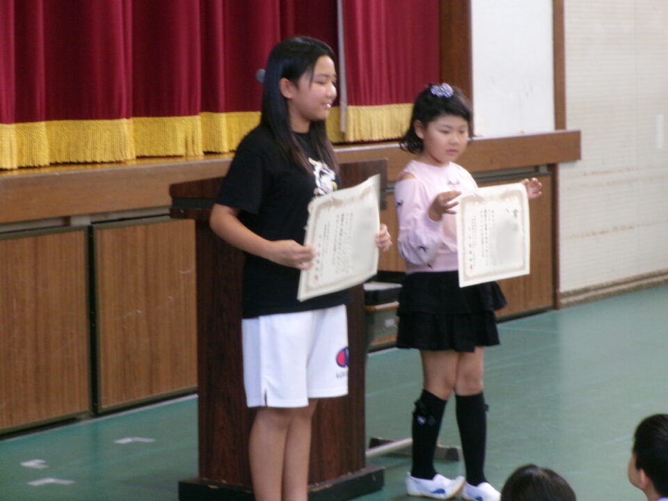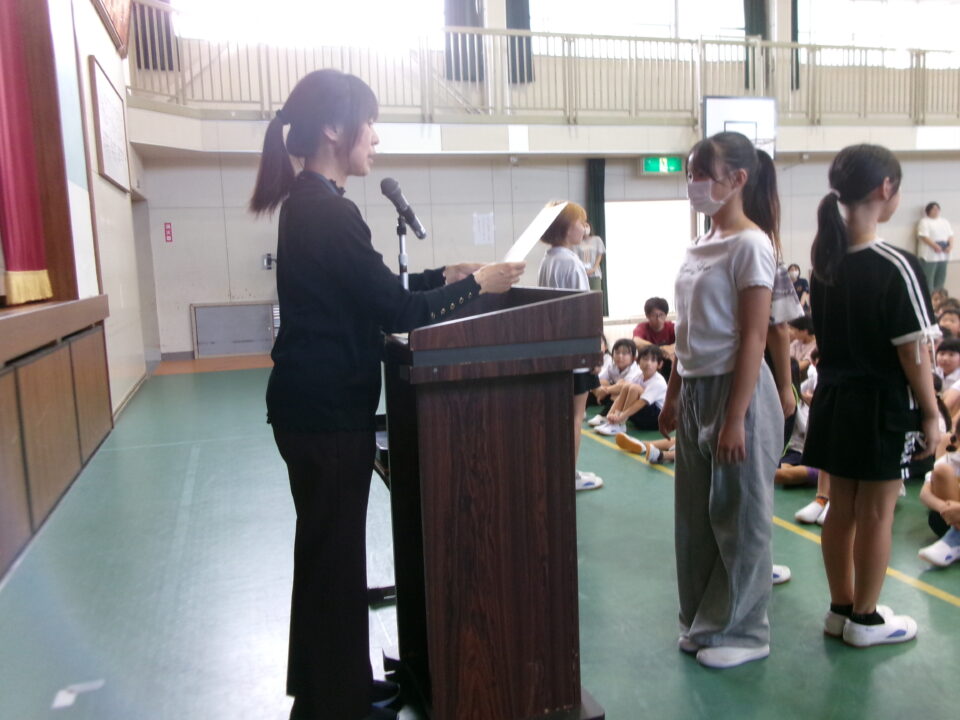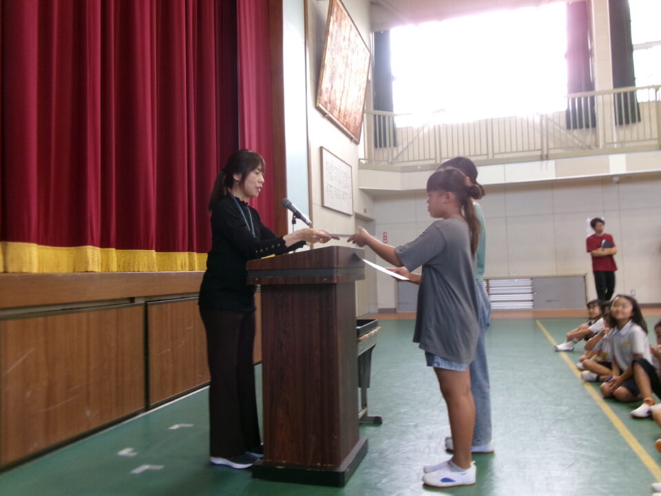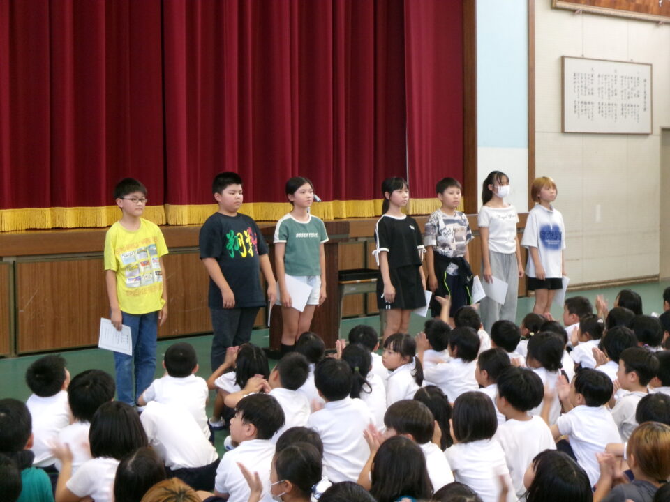 水泳の大会や絵画コンクールで優秀な成績を収めたことで、伝達表彰を行いました。がんばりましたね!!