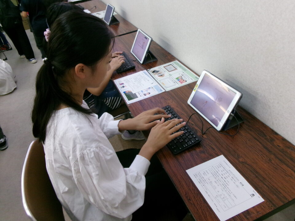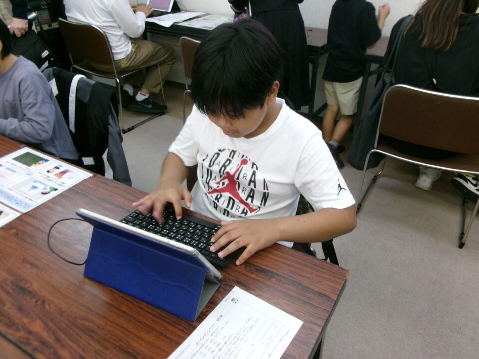 会場かいじょうくと、第四小学校だいよんしょうがっこうがたくさんタイピングに挑戦」ちょうせんしていました。