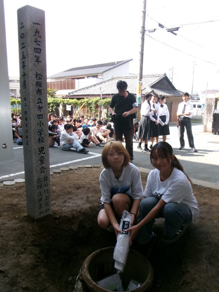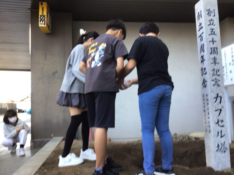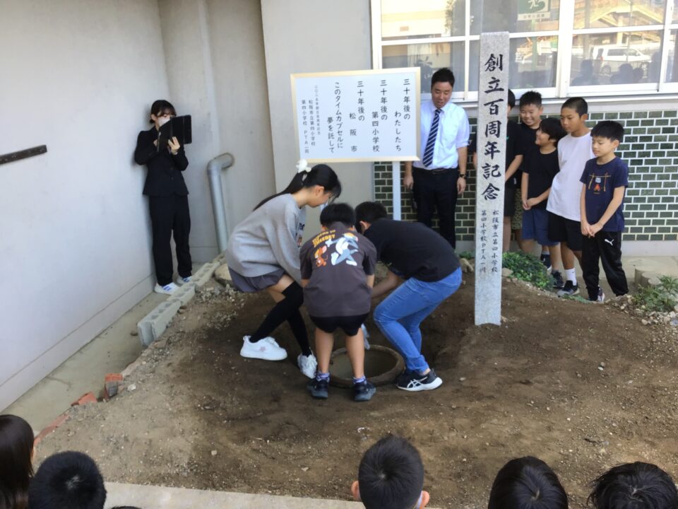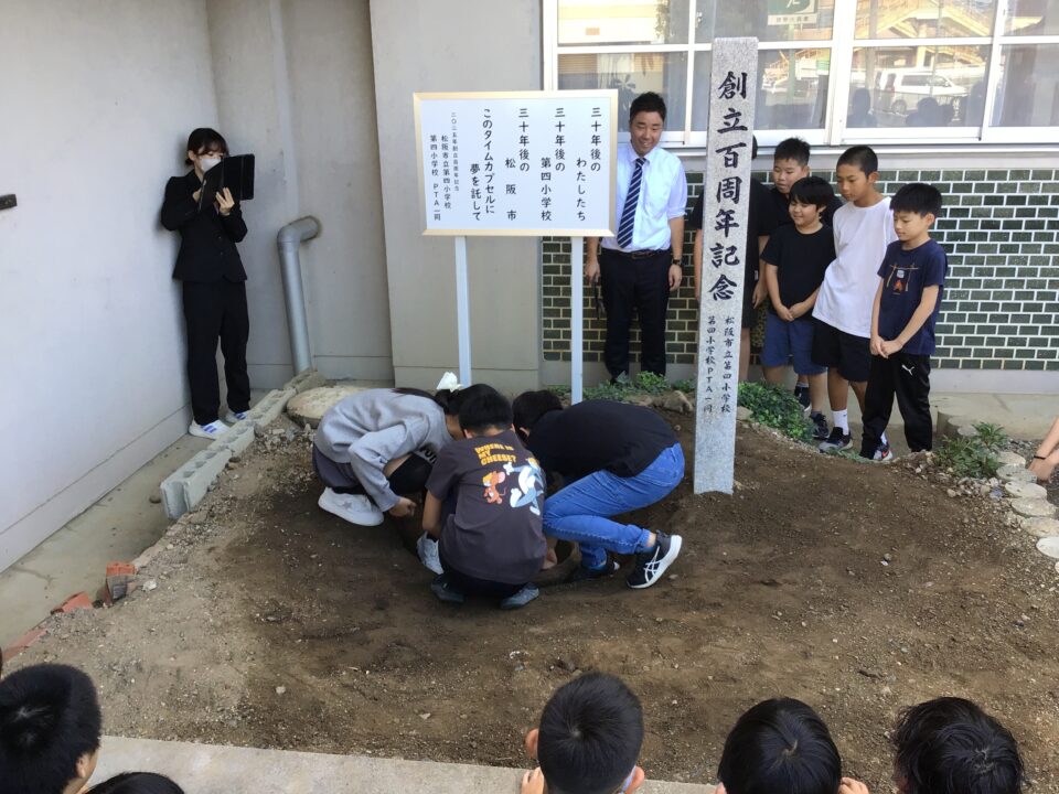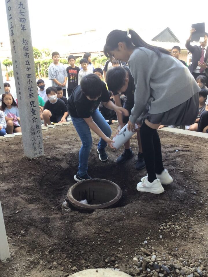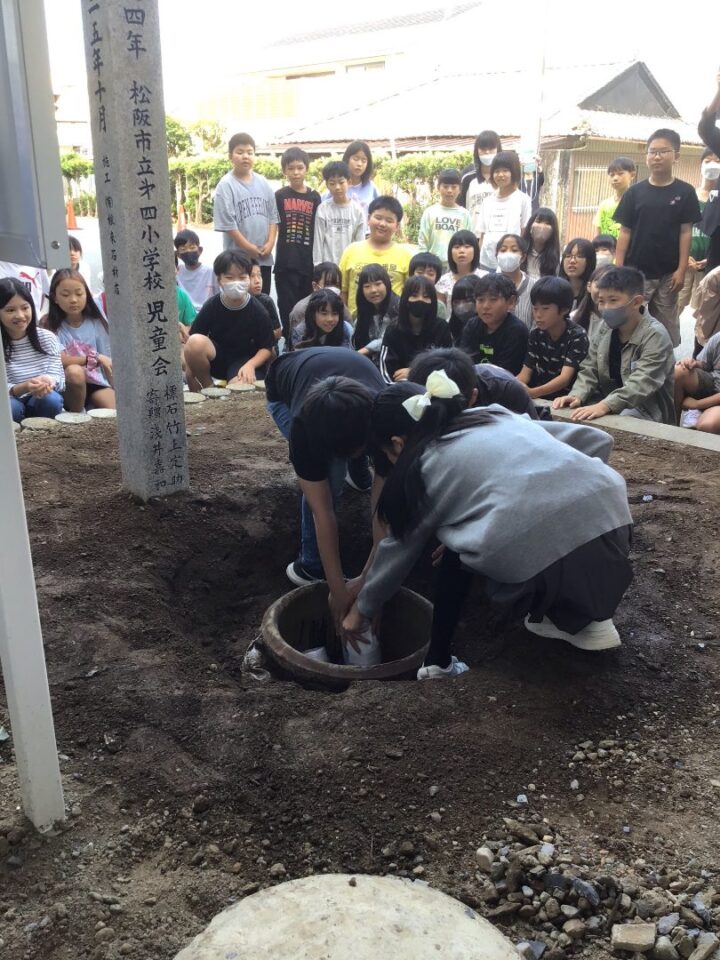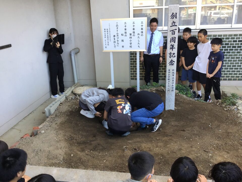 どもたちは、30年後ねんご未来みらいゆめたくして、タイムカプセルに作品さくひんれました。