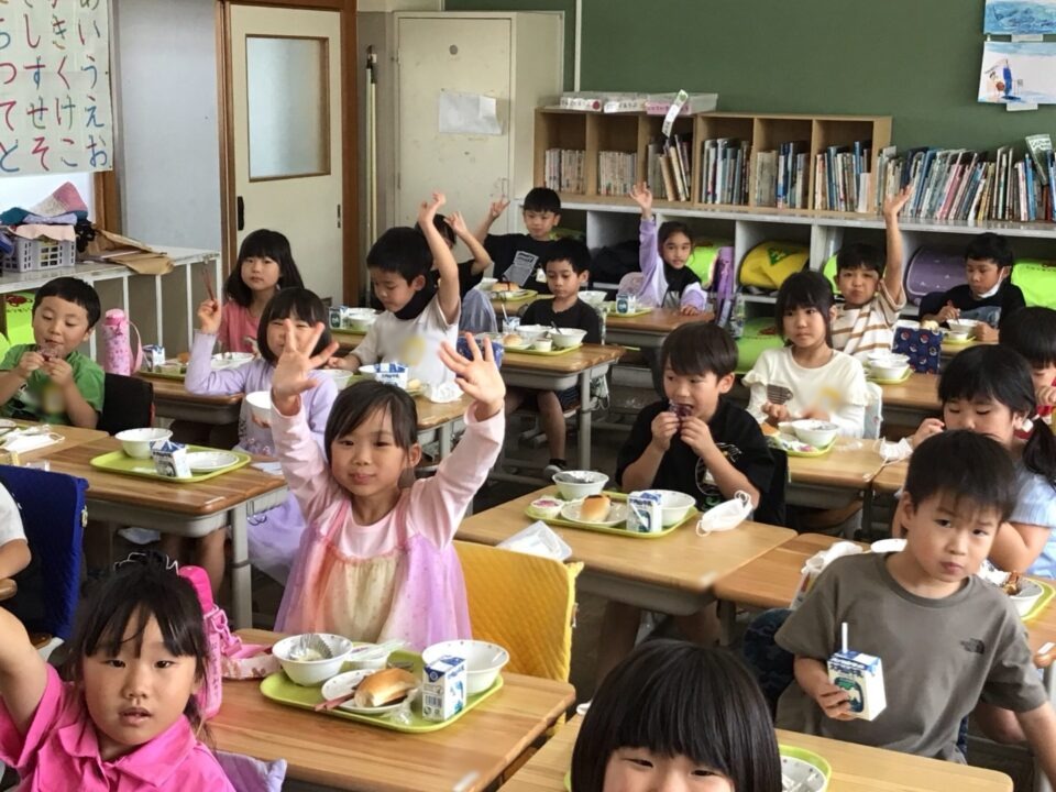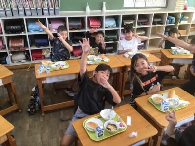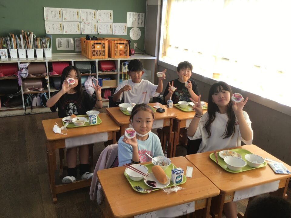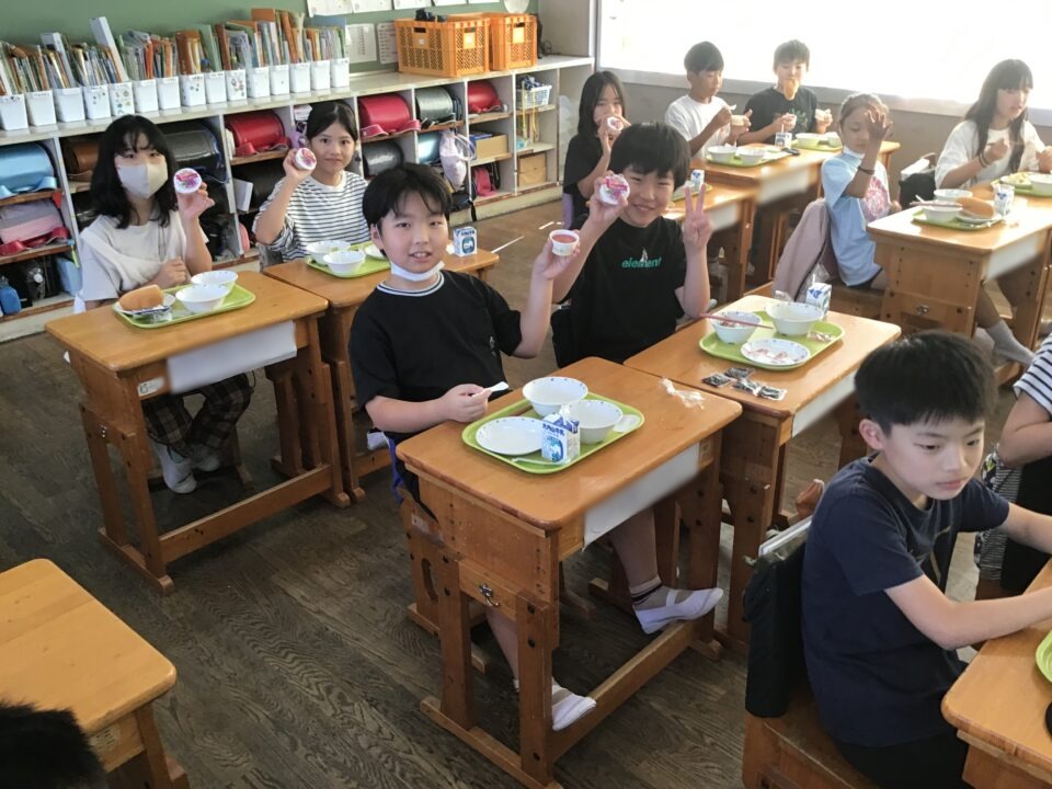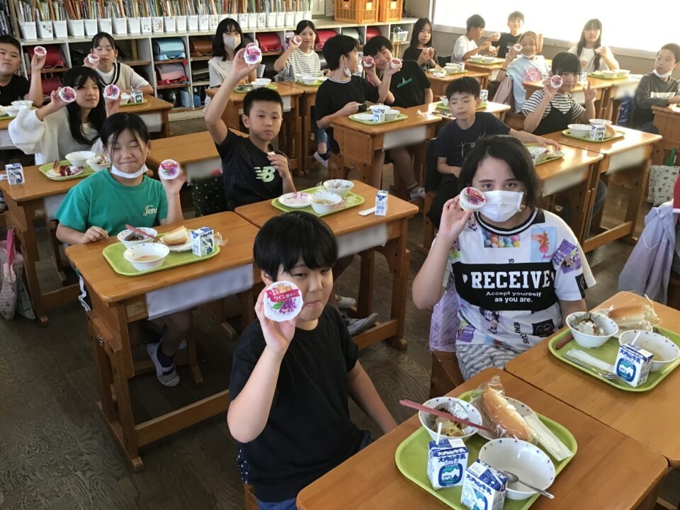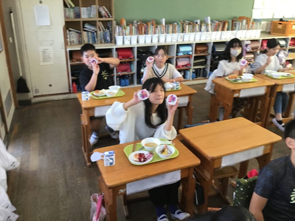 第四小学校は、創立100周年のお祝いに『ワインゼリー』がデザートにつきました。